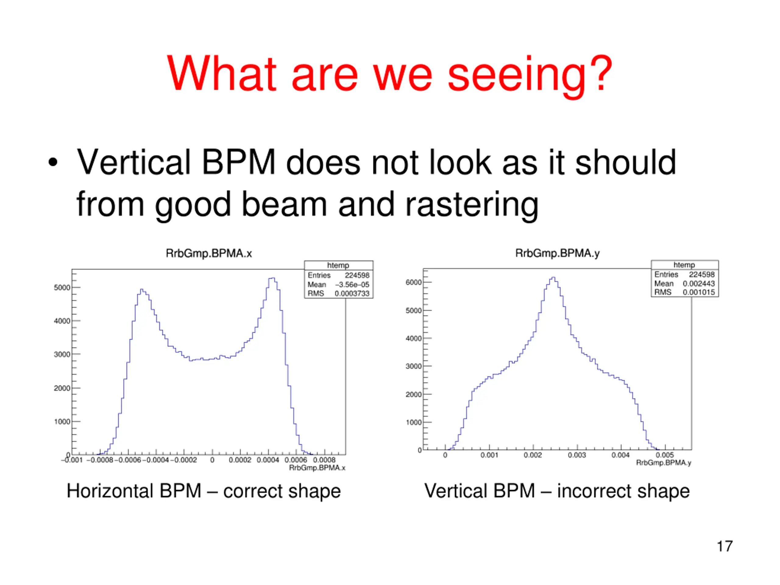What are we seeing? Vertical BPM does not look as it should from good beam and rastering Horizontal BPM correct shape Vertical BPM incorrect shape 17