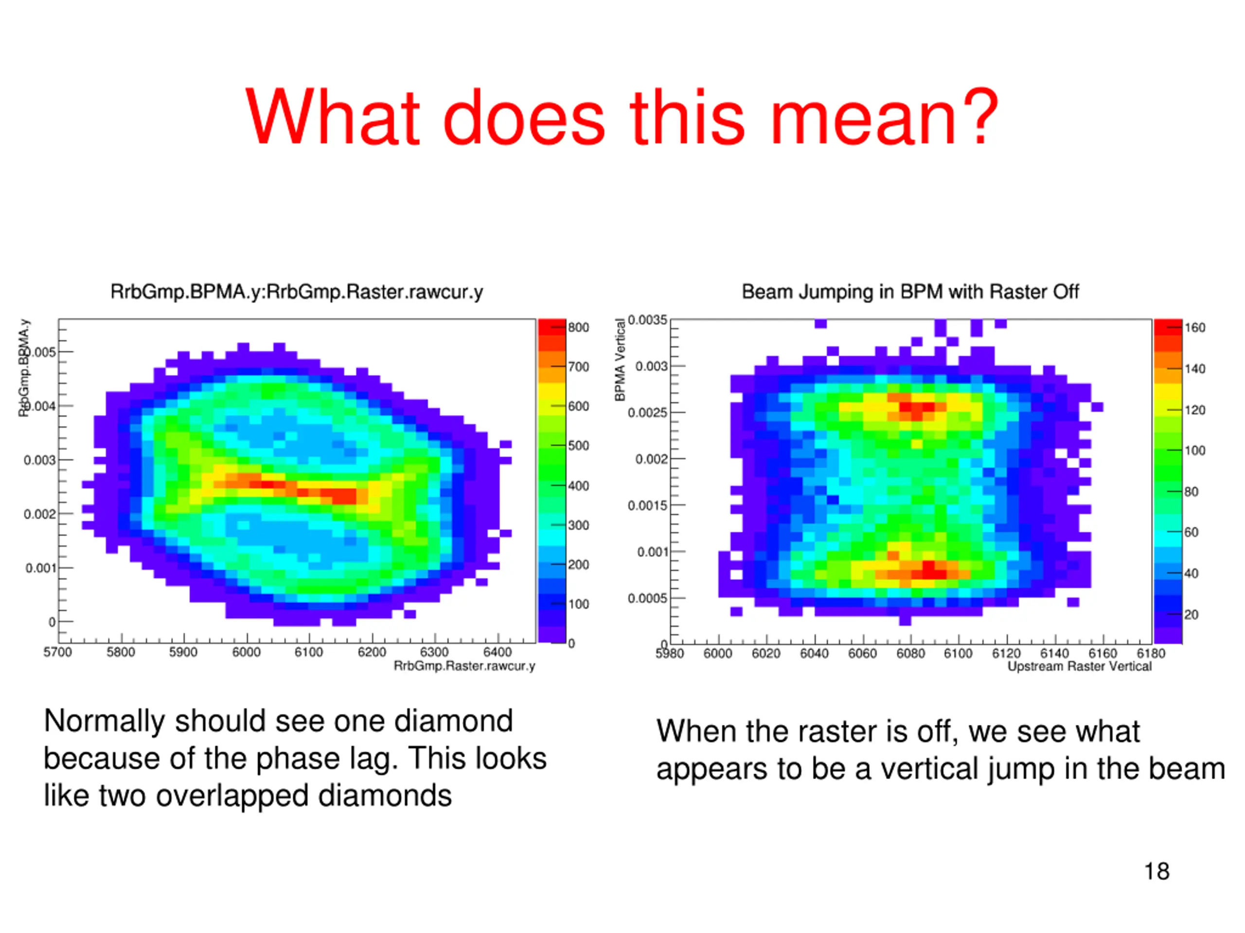 What does this mean? Normally should see one diamond because of the phase lag. This looks like two overlapped diamonds When the raster is off, we see what appears to be a vertical jump in the beam 18