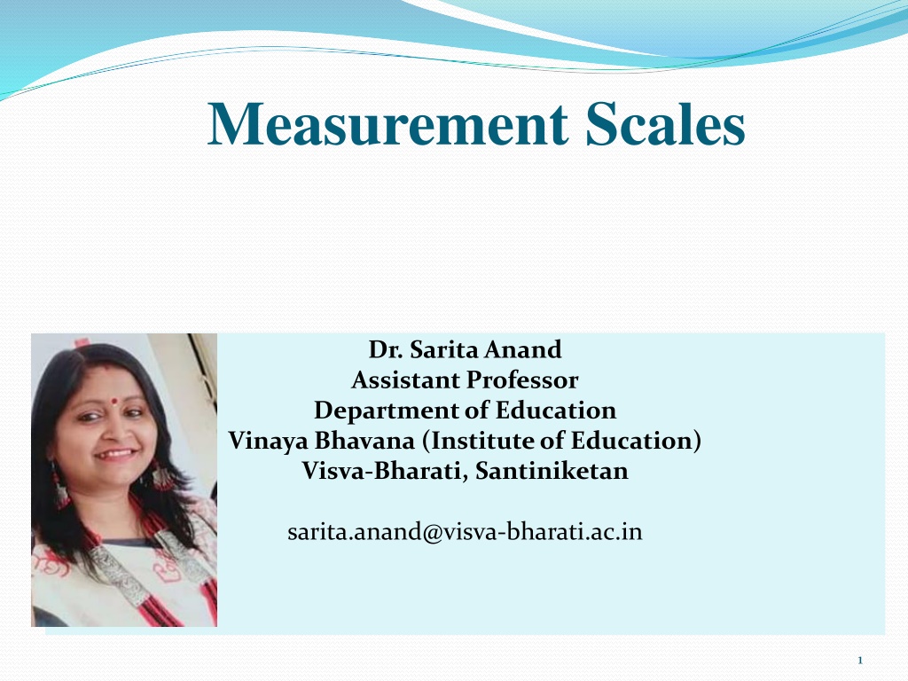 Measurement Scales Dr. Sarita Anand Assistant Professor Department of Education Vinaya Bhavana (Institute of Education) Visva-Bharati, Santiniketan sarita.anand@visva-bharati.ac.in 1