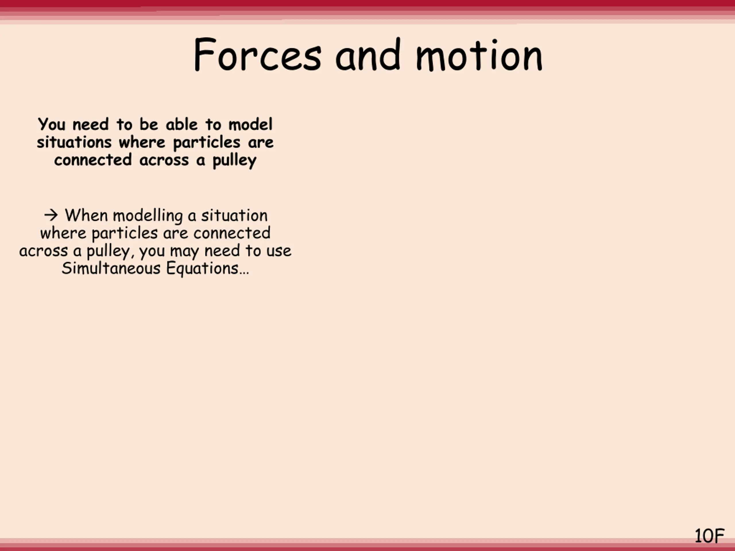 Forces and motion You need to be able to model situations where particles are connected across a pulley When modelling a situation where particles are connected across a pulley, you may need to use Simultaneous Equations 10F