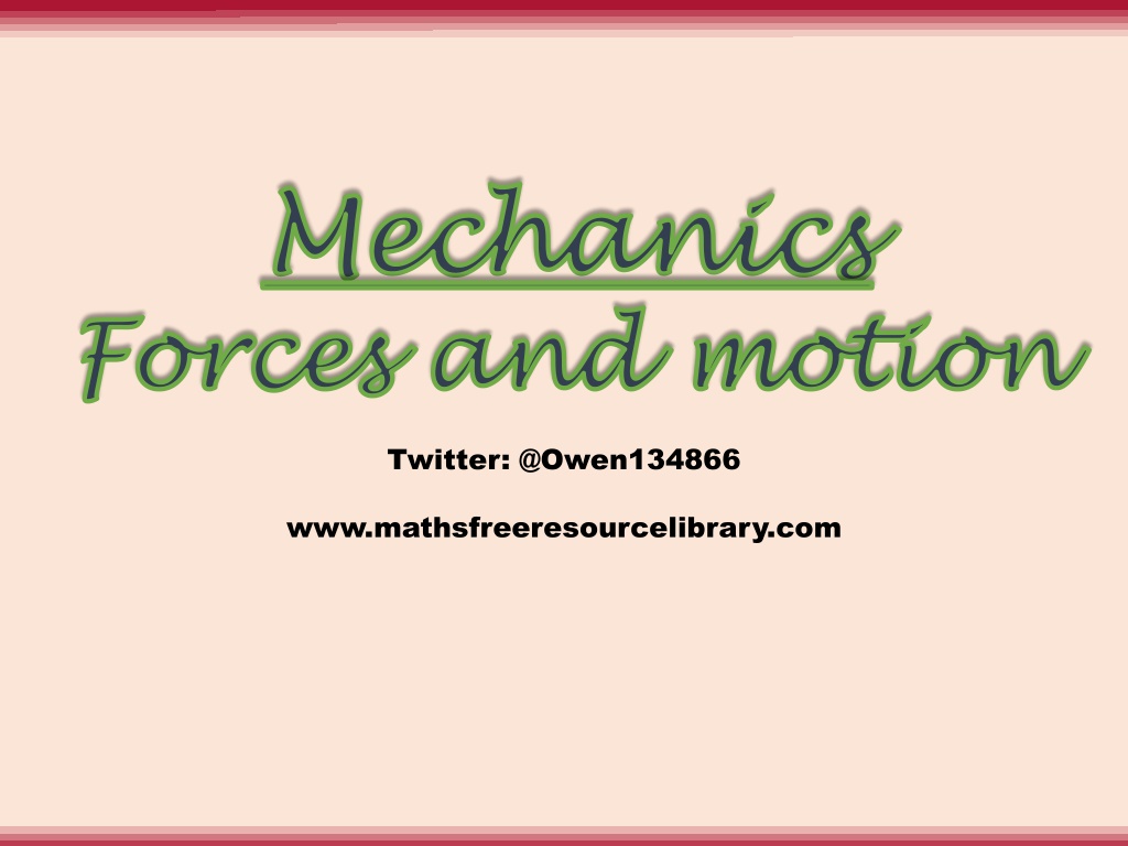 Mechanics Mechanics Forces and motion Forces and motion Twitter: @Owen134866 www.mathsfreeresourcelibrary.com