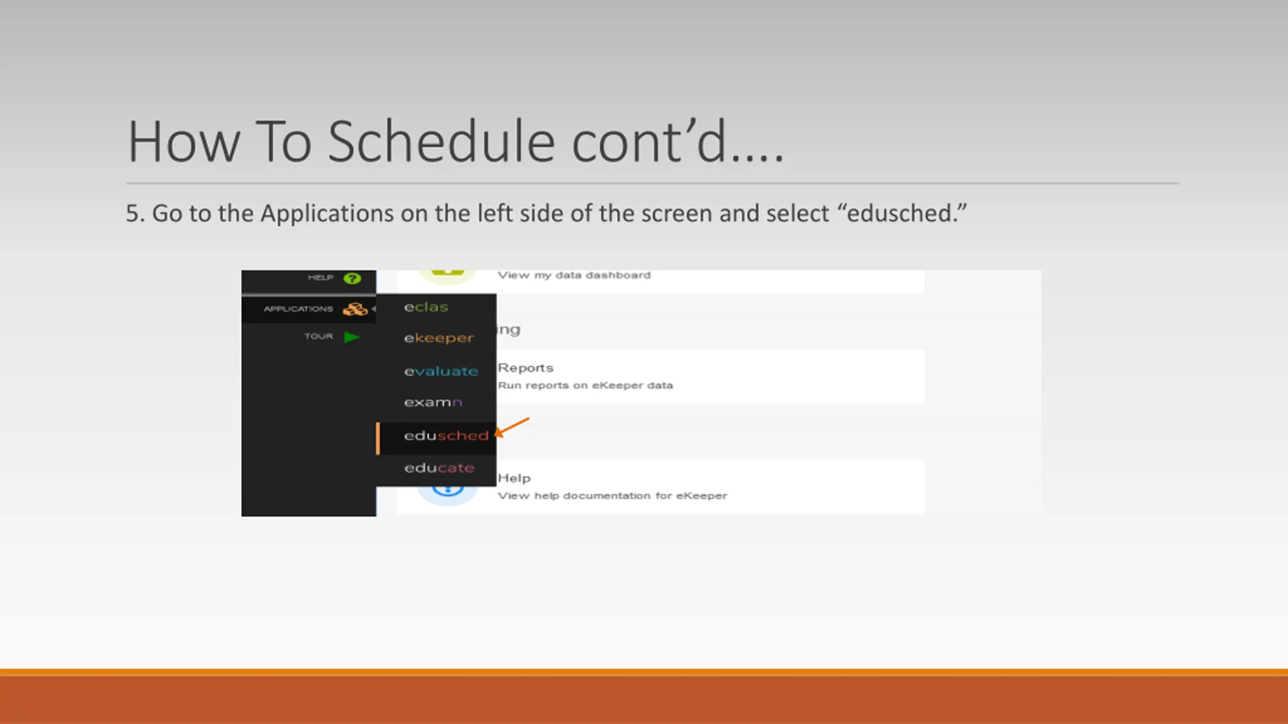 How To Schedule contd. 5. Go to the Applications on the left side of the screen and select edusched.