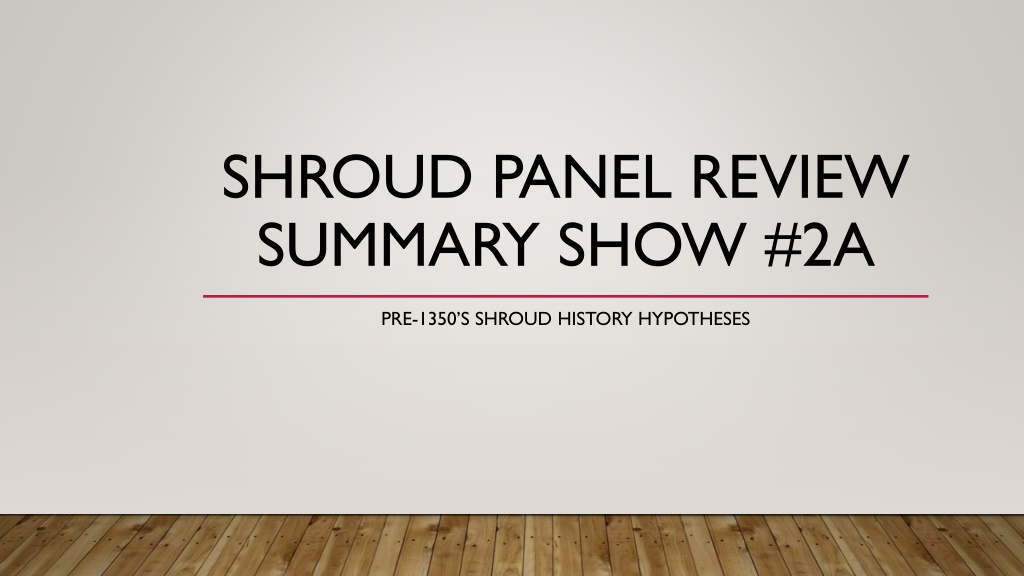 SHROUD PANEL REVIEW SUMMARY SHOW #2A PRE-1350 S SHROUD HISTORY HYPOTHESES