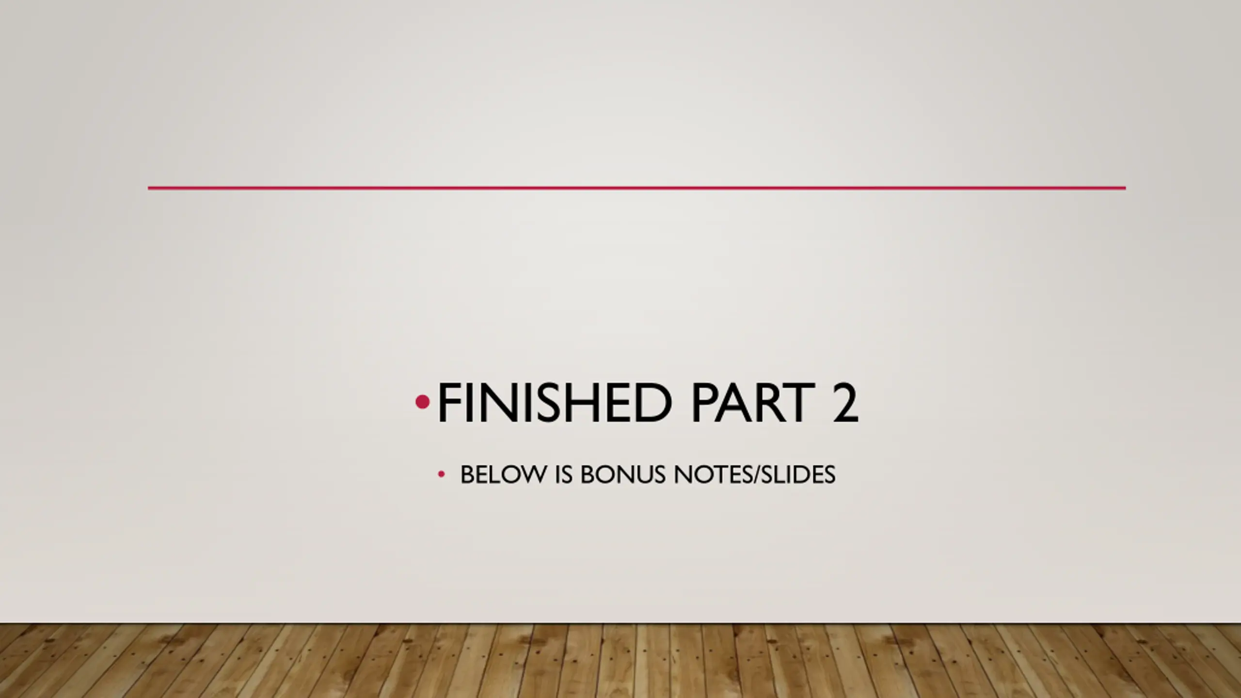 FINISHED PART 2 BELOW IS BONUS NOTES/SLIDES
