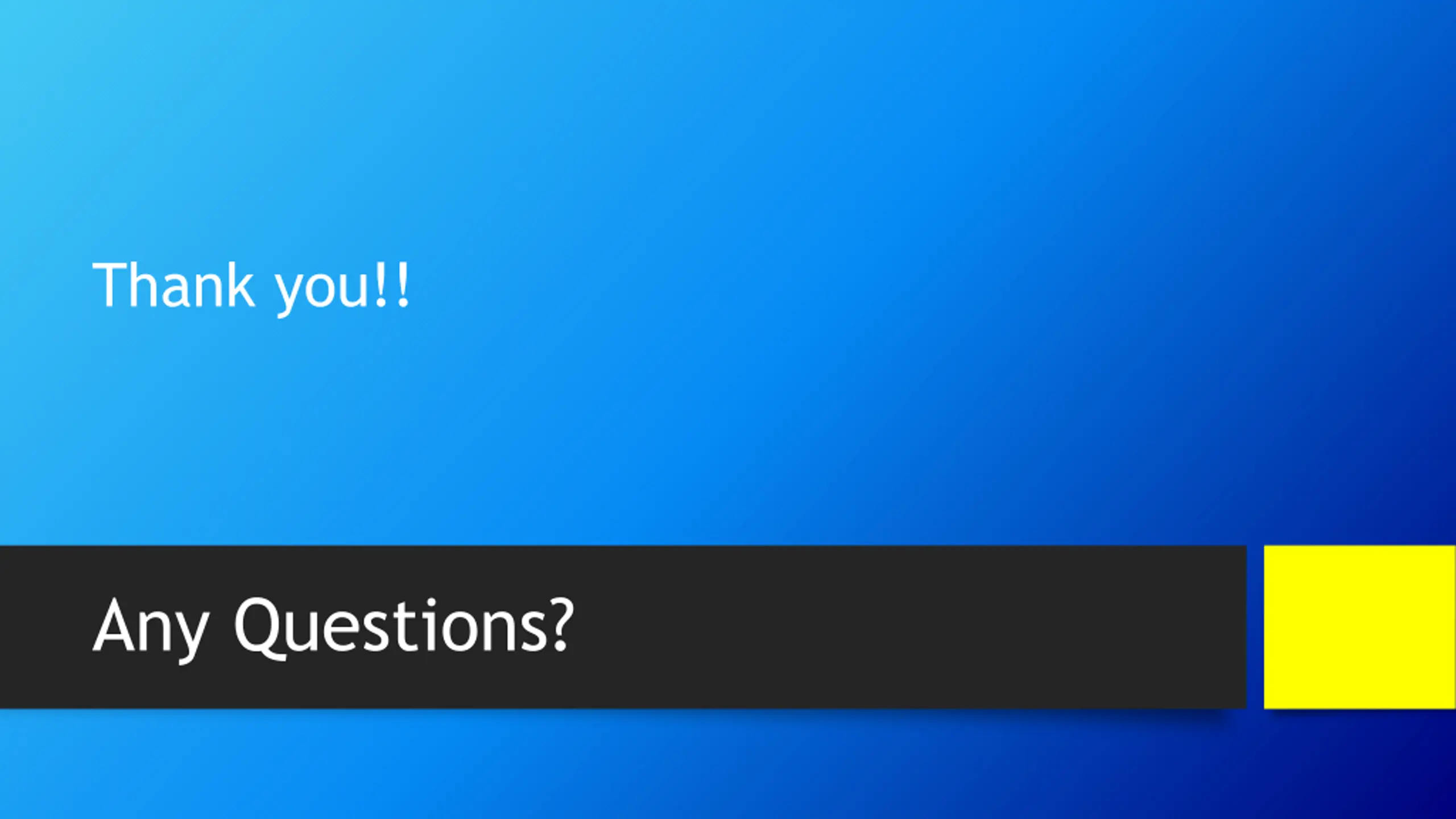 Thank you!! Any Questions?