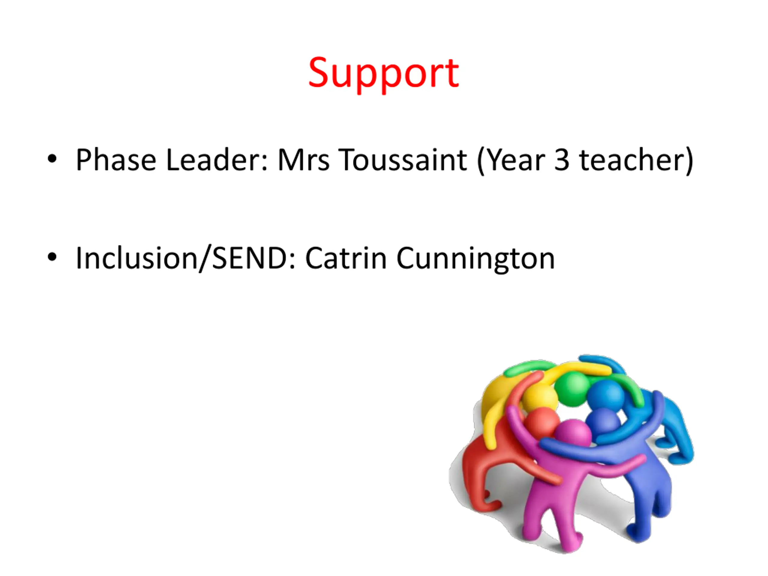 Support Phase Leader: Mrs Toussaint (Year 3 teacher) Inclusion/SEND: Catrin Cunnington