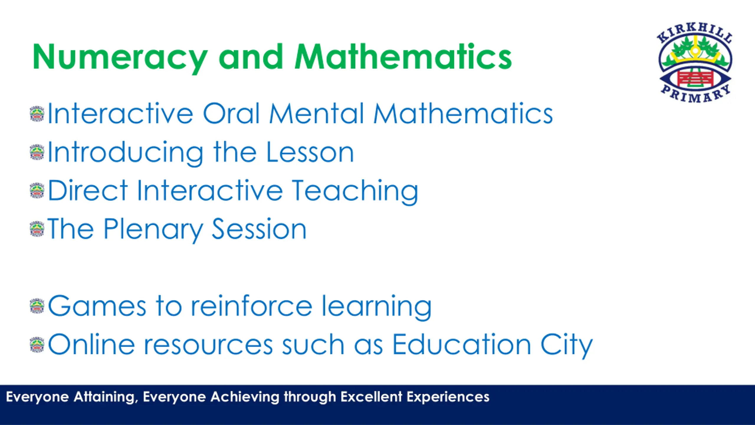 Numeracy and Mathematics Interactive Oral Mental Mathematics Introducing the Lesson Direct Interactive Teaching The Plenary Session Games to reinforce learning Online resources such as Education City Everyone Attaining, Everyone Achieving through Excellent Experiences