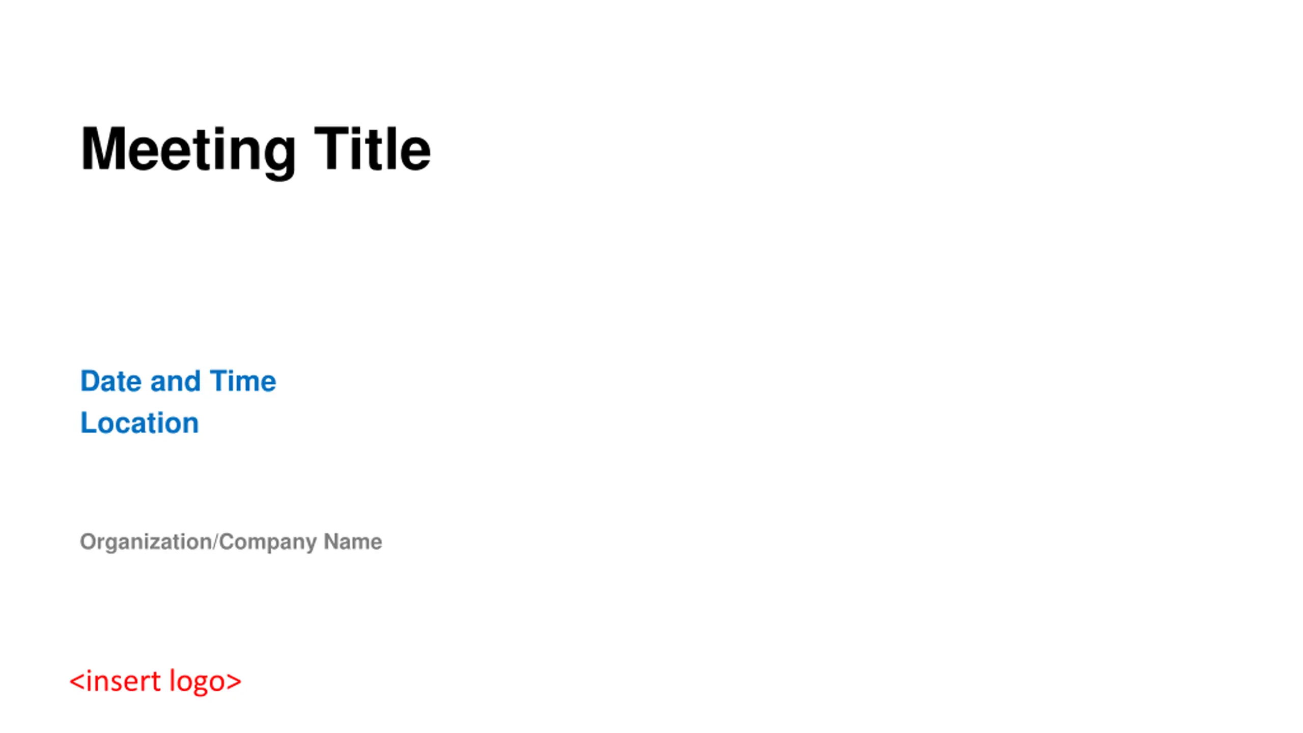 Meeting Title Date and Time Location Organization/Company Name <insert logo>