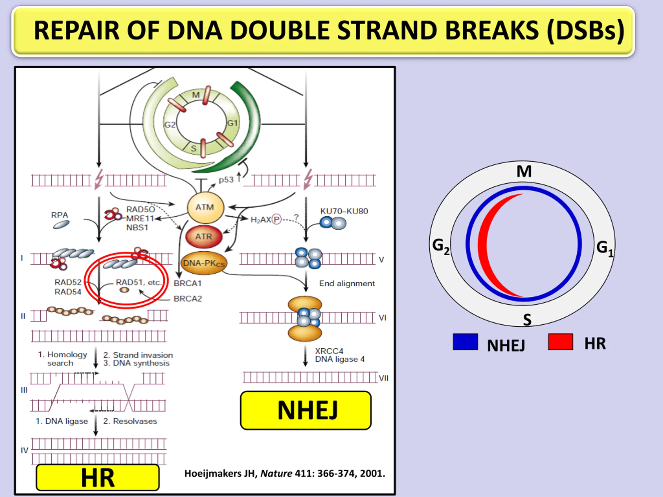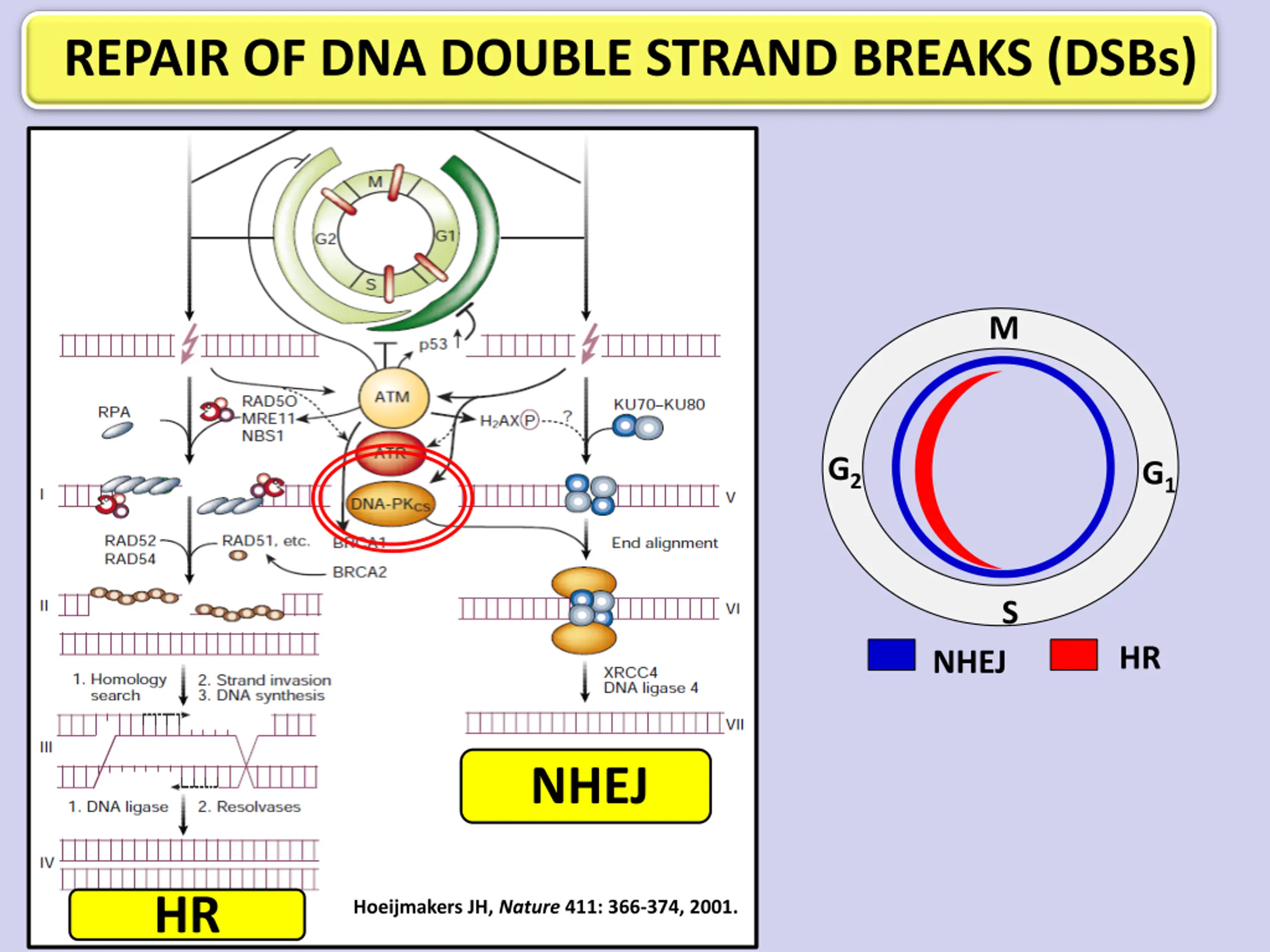 REPAIR OF DNA DOUBLE STRAND BREAKS (DSBs) M G2 G1 S HR NHEJ NHEJ HR Hoeijmakers JH, Nature 411: 366-374, 2001.