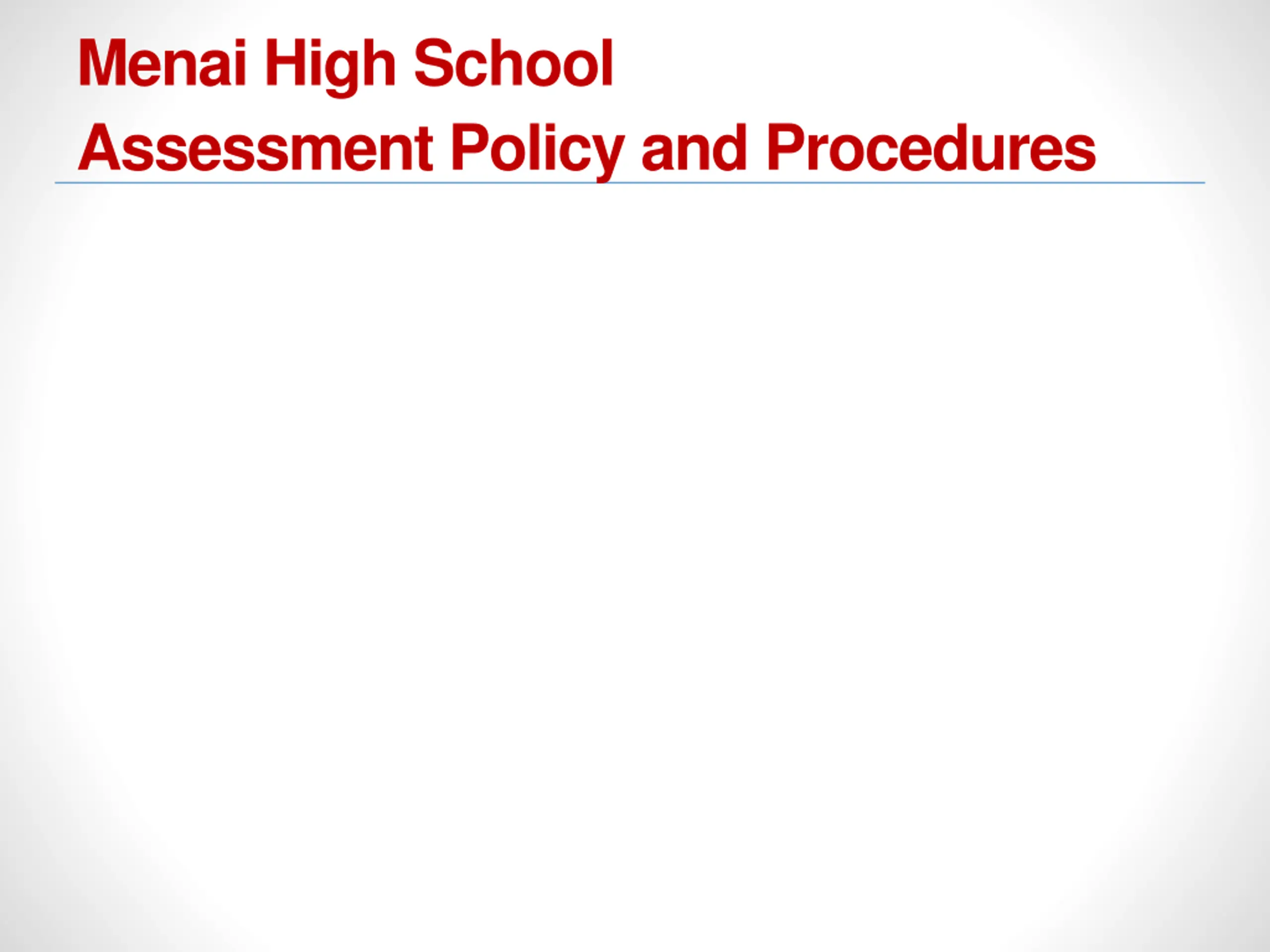 Menai High School Assessment Policy and Procedures Overview