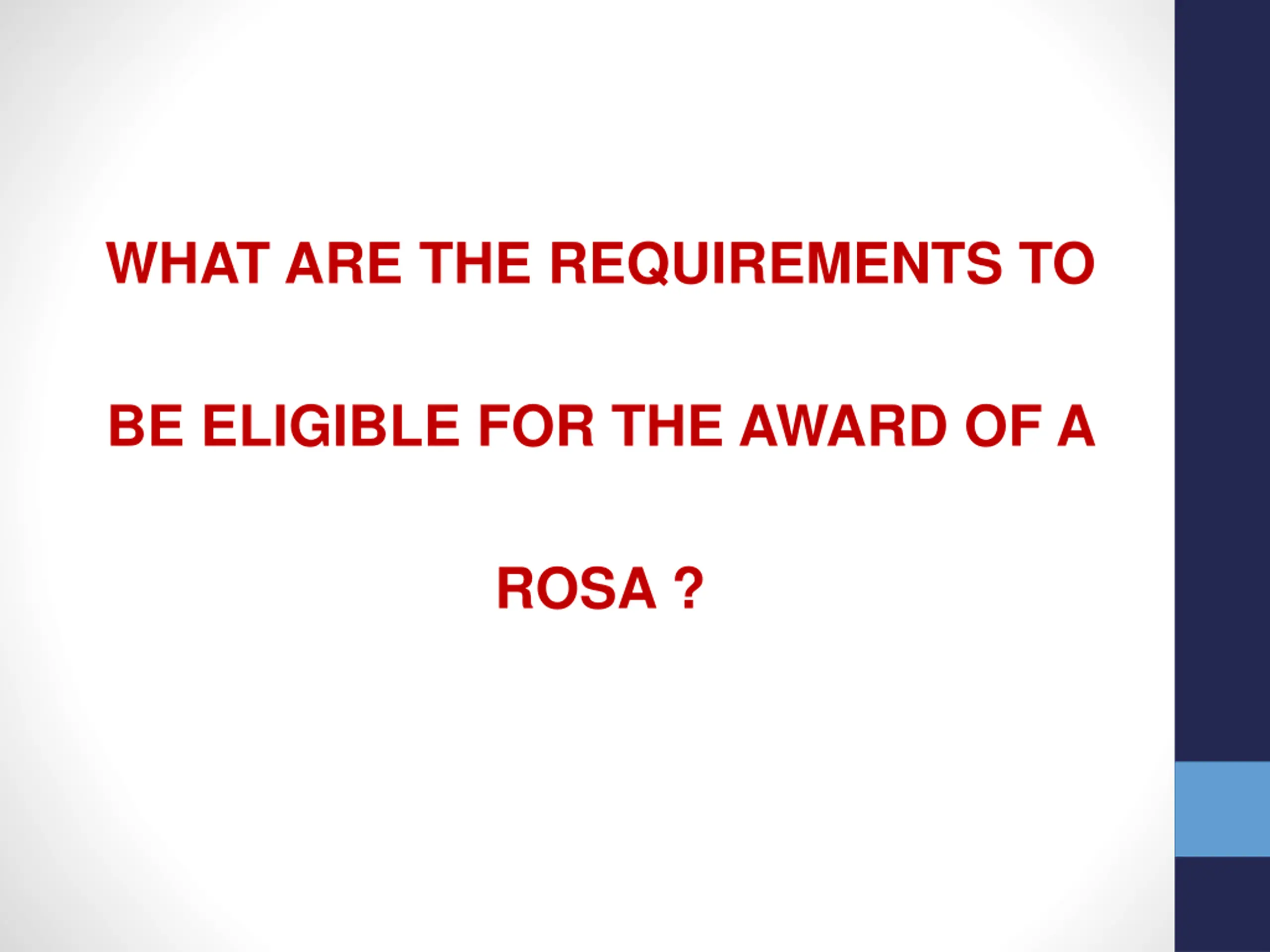 WHAT ARE THE REQUIREMENTS TO BE ELIGIBLE FOR THE AWARD OF A ROSA ?