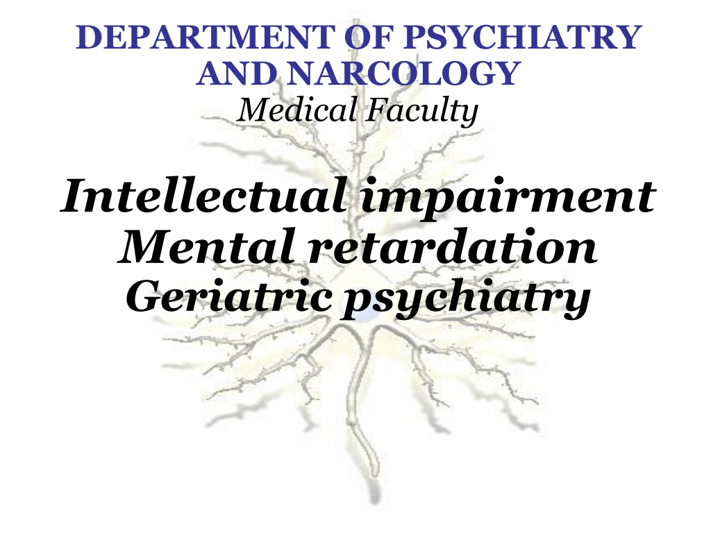 DEPARTMENT OF PSYCHIATRY AND NARCOLOGY Medical Faculty Intellectual impairment Mental retardation Geriatric psychiatry