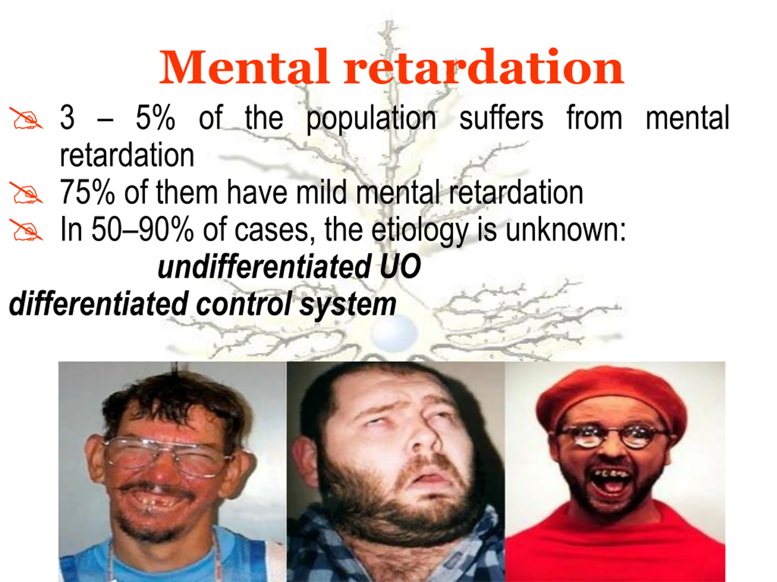 Mental retardation 3 5% of the population suffers from mental retardation 75% of them have mild mental retardation In 50 90% of cases, the etiology is unknown: undifferentiated UO differentiated control system