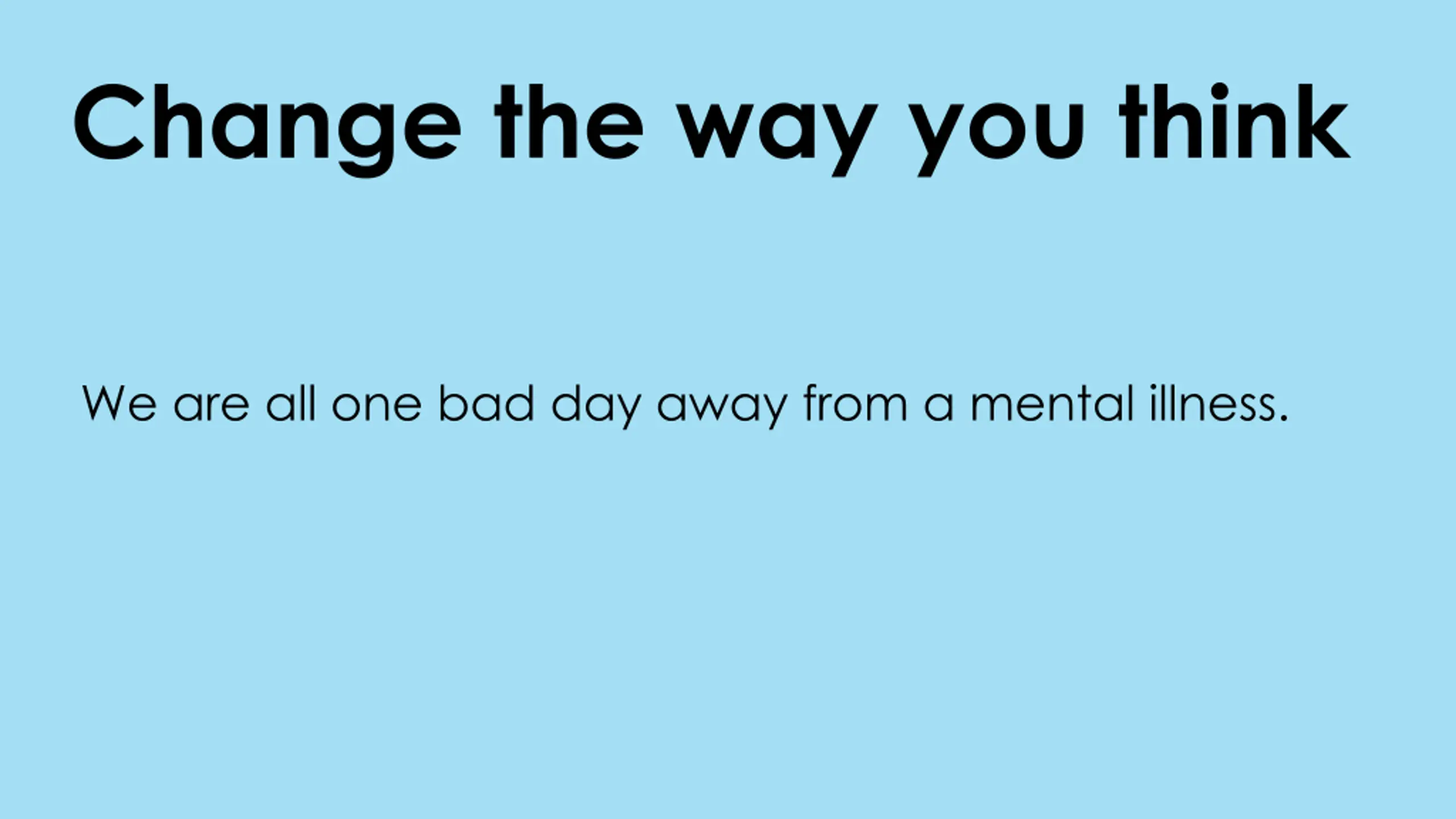 Change the way you think We are all one bad day away from a mental illness.