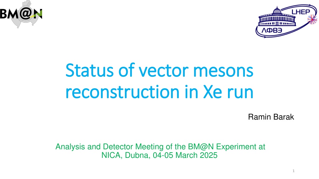 Status of vector mesons Status of vector mesons reconstruction in Xe run reconstruction in Xe run Ramin Barak Analysis and Detector Meeting of the BM@N Experiment at NICA, Dubna, 04-05 March 2025 1
