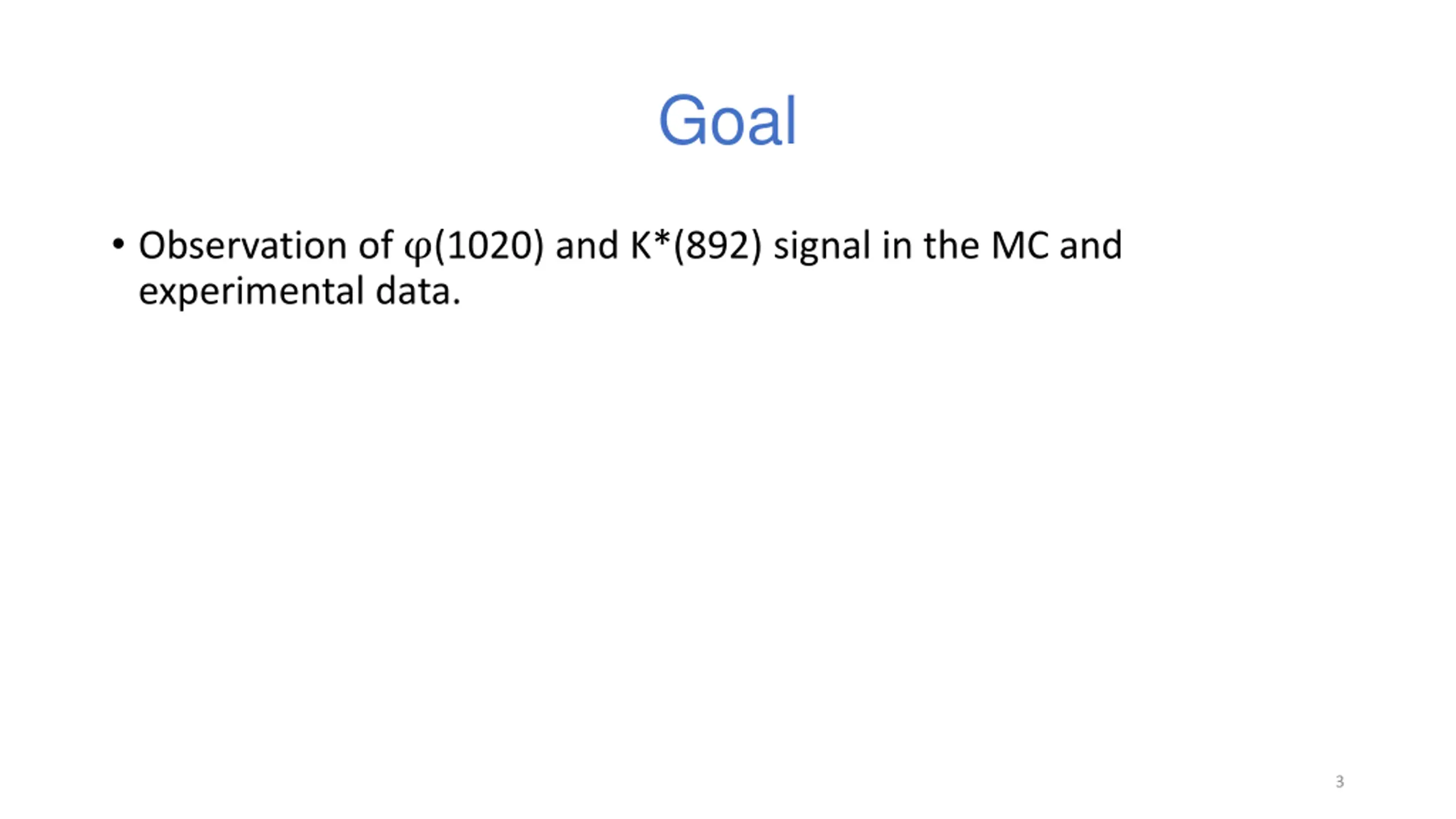 Goal Observation of (1020) and K*(892) signal in the MC and experimental data. 3