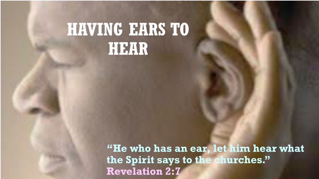 HAVING EARS TO HEAR He who has an ear, let him hear what the Spirit says to the churches. Revelation 2:7