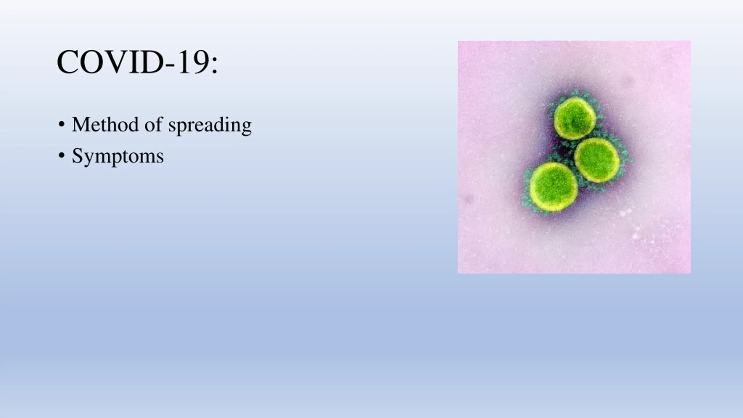 COVID-19: Method of spreading Symptoms
