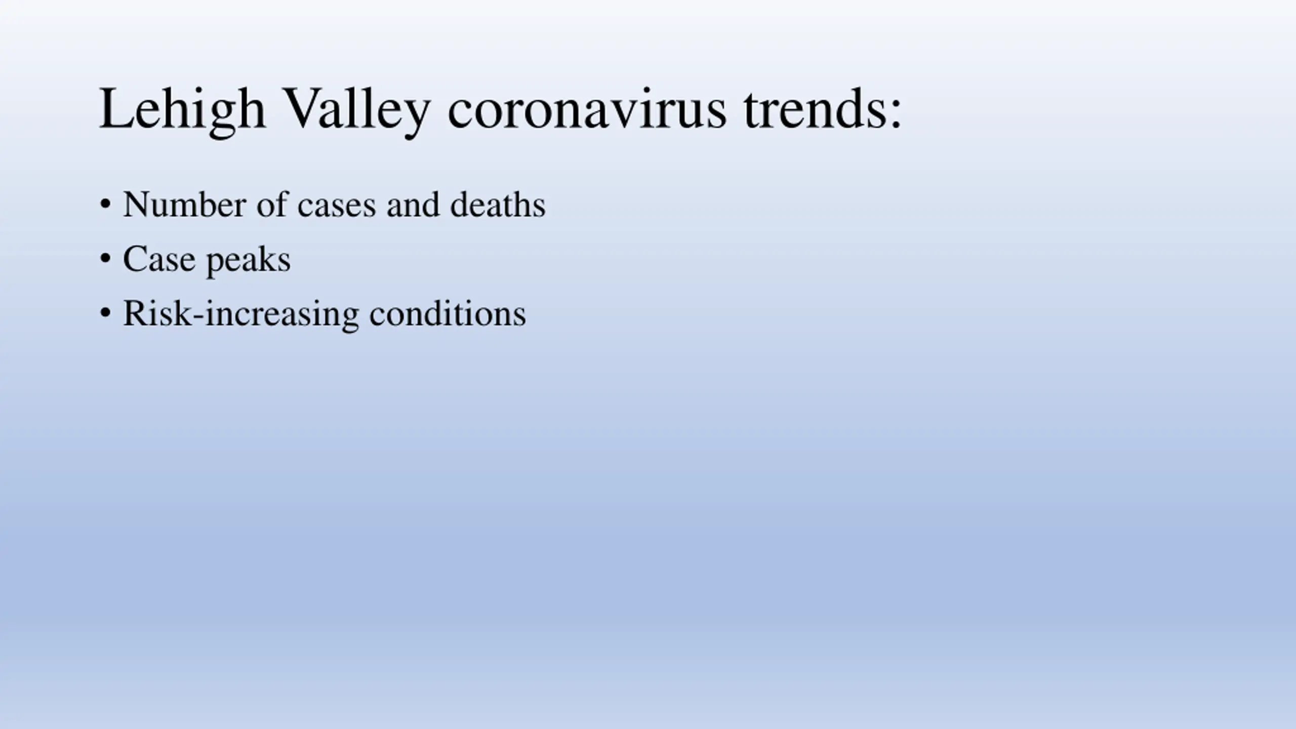 Lehigh Valley coronavirus trends: Number of cases and deaths Case peaks Risk-increasing conditions