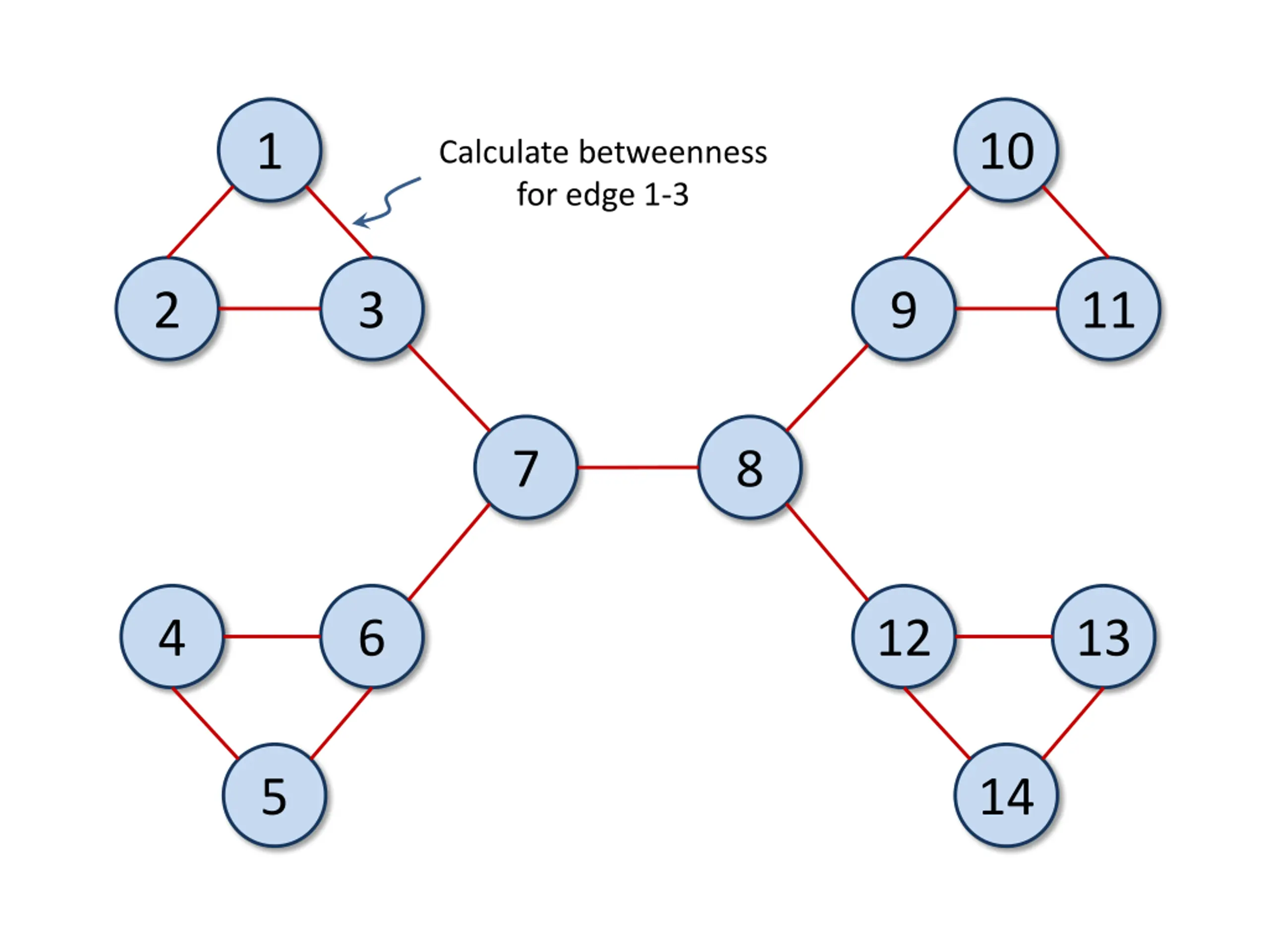1 10 Calculate betweenness for edge 1-3 2 3 9 11 7 8 4 6 12 13 5 14