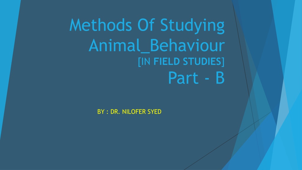 Methods Of Studying Animal_Behaviour [IN FIELD STUDIES] Part - B BY : DR. NILOFER SYED