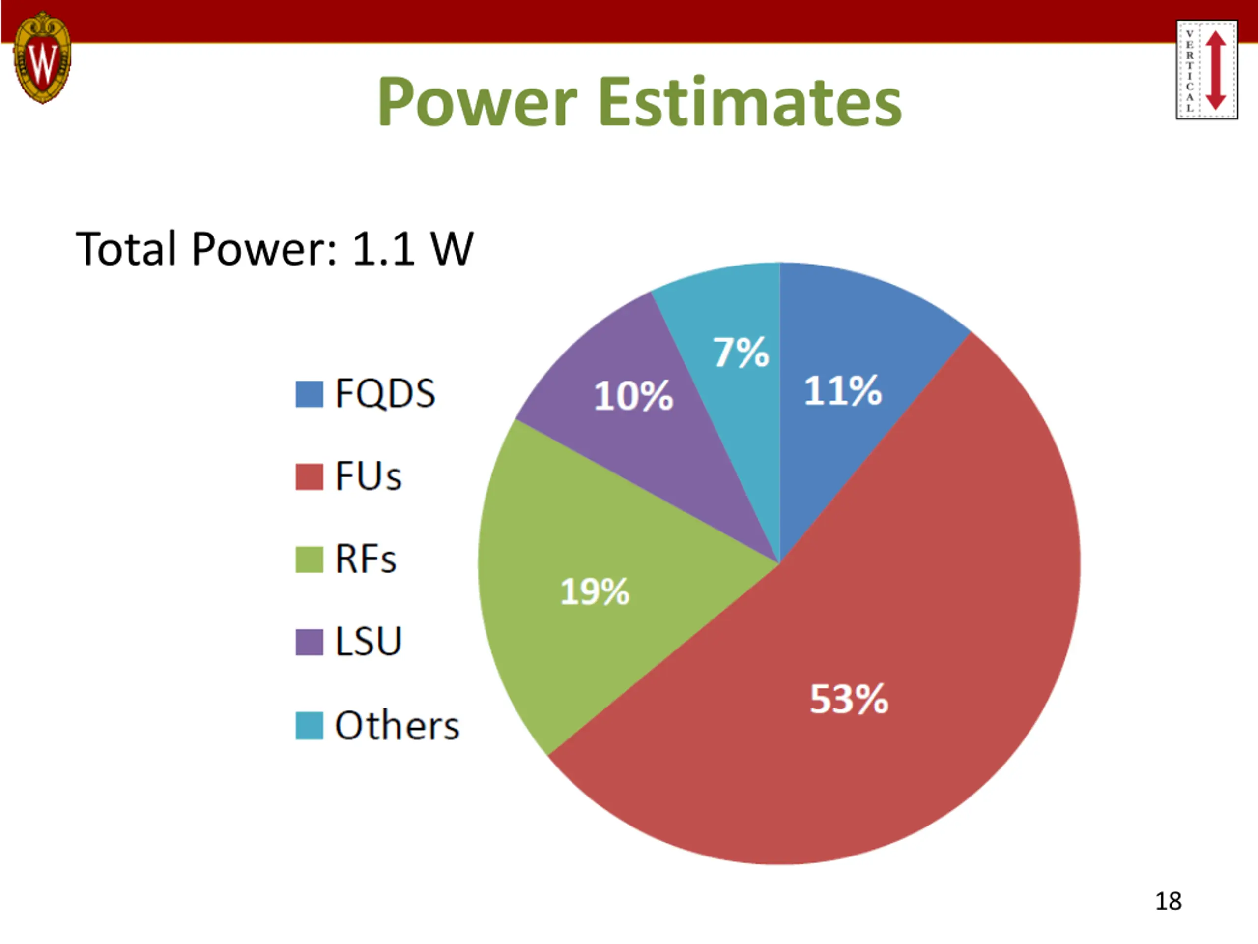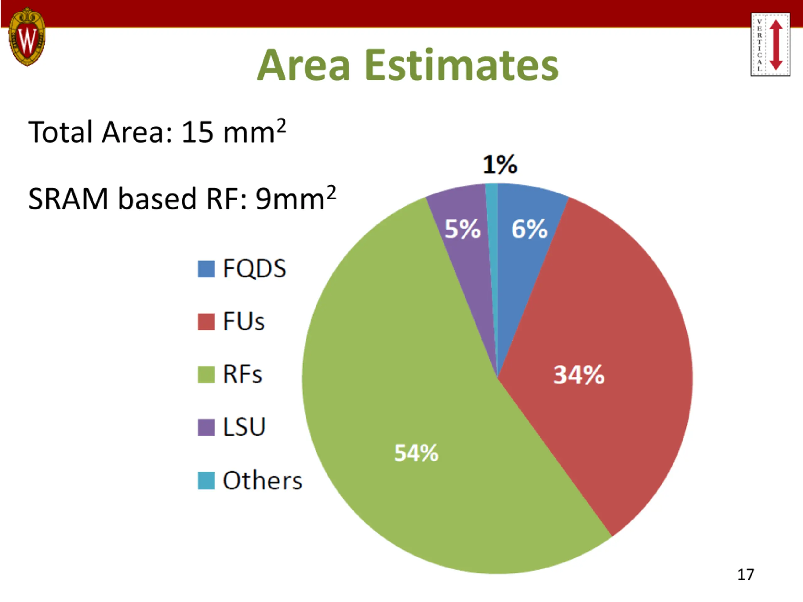 Area Estimates Total Area: 15 mm2 SRAM based RF: 9mm2 17