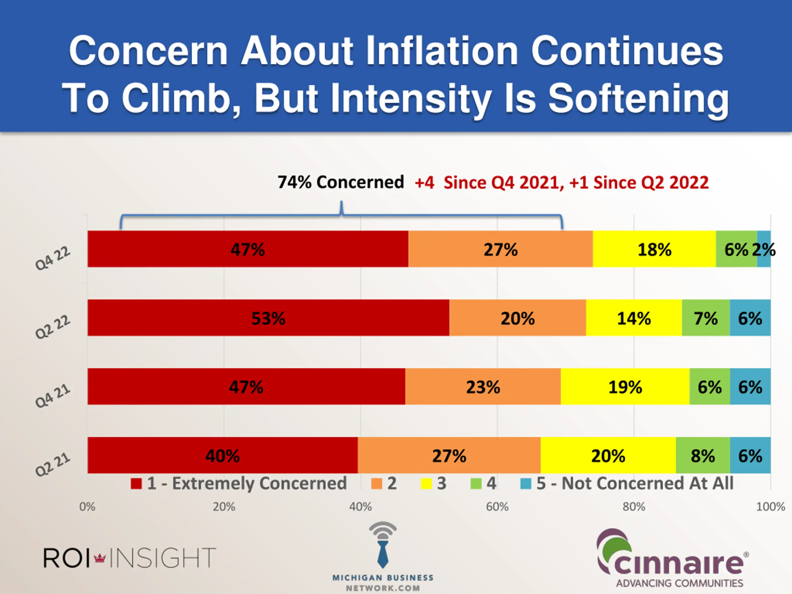 Concern About Inflation Continues To Climb, But Intensity Is Softening 74% Concerned +4 Since Q4 2021, +1 Since Q2 2022 47% 27% 18% 6% 2% 53% 20% 14% 7% 6% 47% 23% 19% 6% 6% 40% 27% 3 20% 8% 6% 1 - Extremely Concerned 2 4 5 - Not Concerned At All 0% 20% 40% 60% 80% 100%