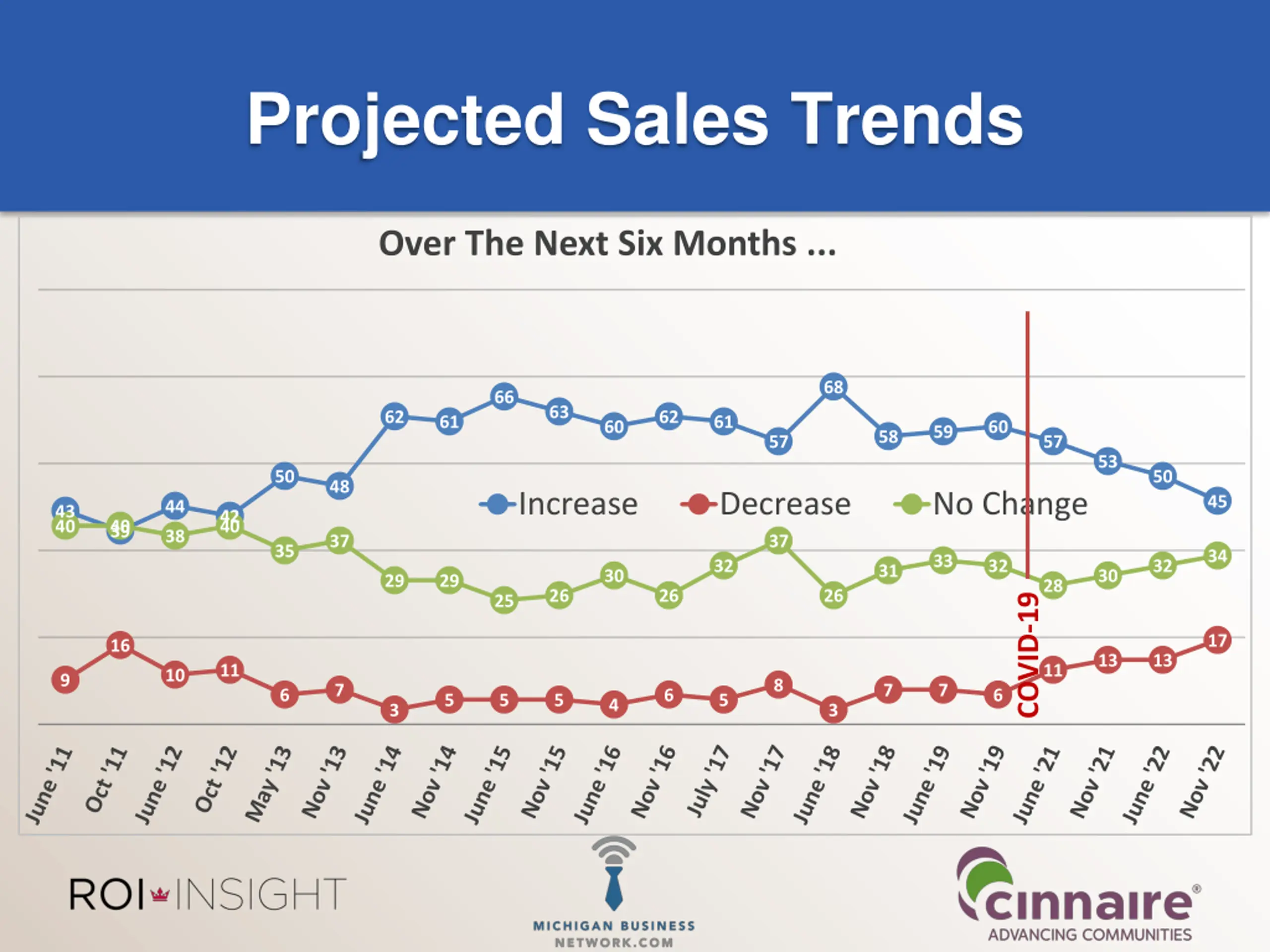 Projected Sales Trends Over The Next Six Months ... 68 66 63 62 62 61 61 60 60 59 58 57 57 53 50 50 48 Increase Decrease No Change 45 44 43 40 42 40 39 40 38 37 37 35 34 33 32 32 32 31 30 30 29 29 28 26 26 26 COVID-19 25 17 16 13 13 11 11 10 9 8 7 7 7 6 6 6 5 5 5 5 4 3 3
