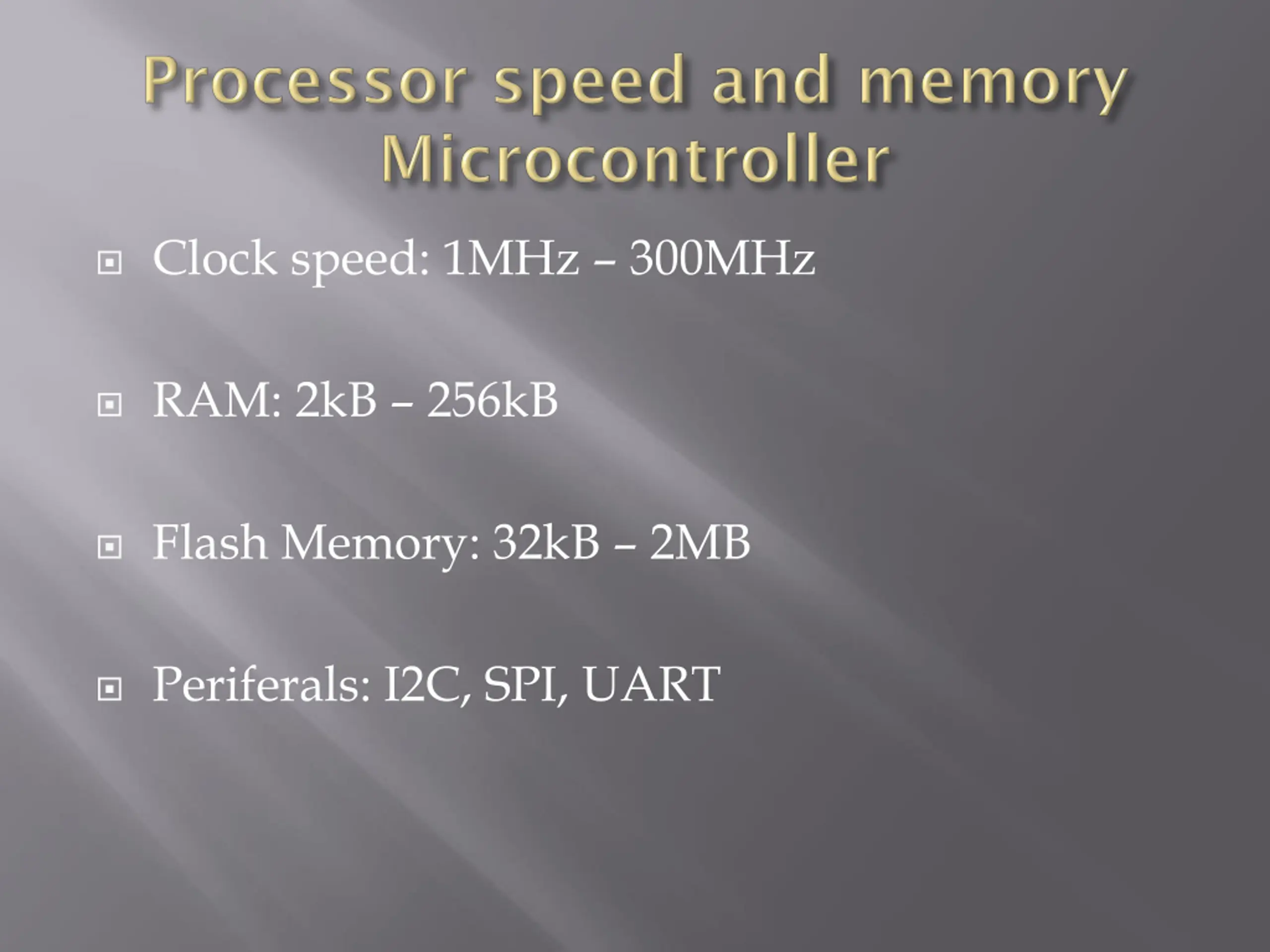 Clock speed: 1MHz 300MHz RAM: 2kB 256kB Flash Memory: 32kB 2MB Periferals: I2C, SPI, UART