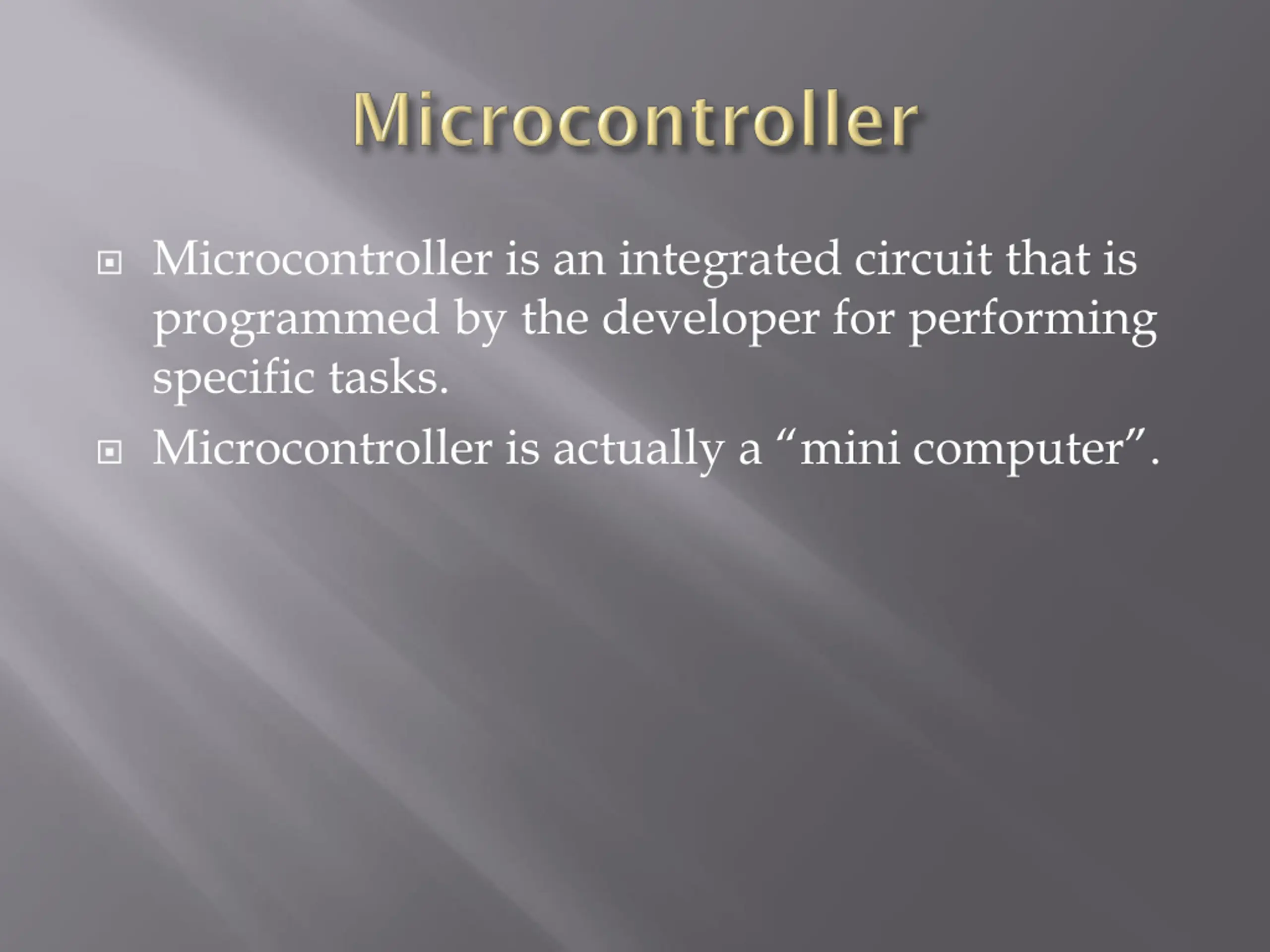 Microcontroller is an integrated circuit that is programmed by the developer for performing specific tasks. Microcontroller is actually a mini computer .