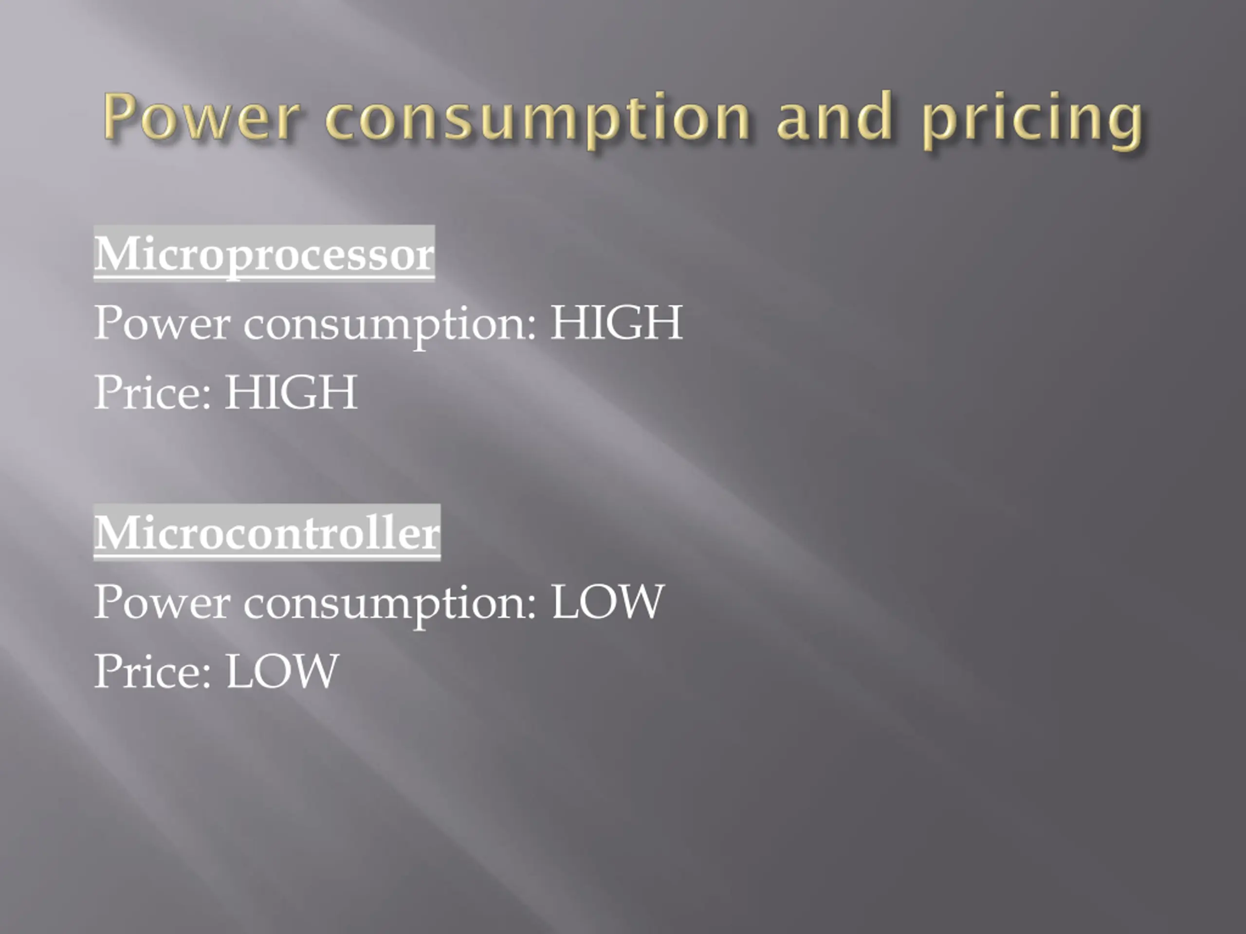 Microprocessor Power consumption: HIGH Price: HIGH Microcontroller Power consumption: LOW Price: LOW