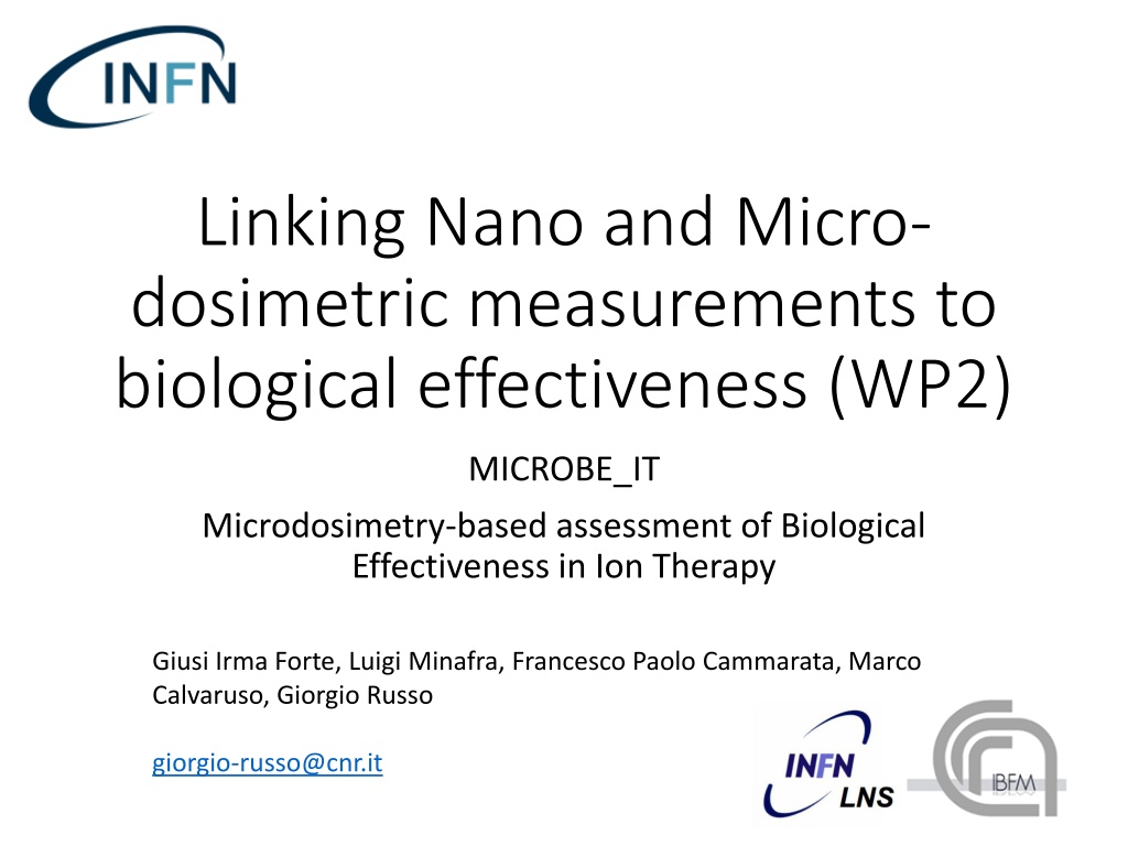 Linking Nano and Micro- dosimetric measurements to biological effectiveness (WP2) MICROBE_IT Microdosimetry-based assessment of Biological Effectiveness in Ion Therapy Giusi Irma Forte, Luigi Minafra, Francesco Paolo Cammarata, Marco Calvaruso, Giorgio Russo giorgio-russo@cnr.it
