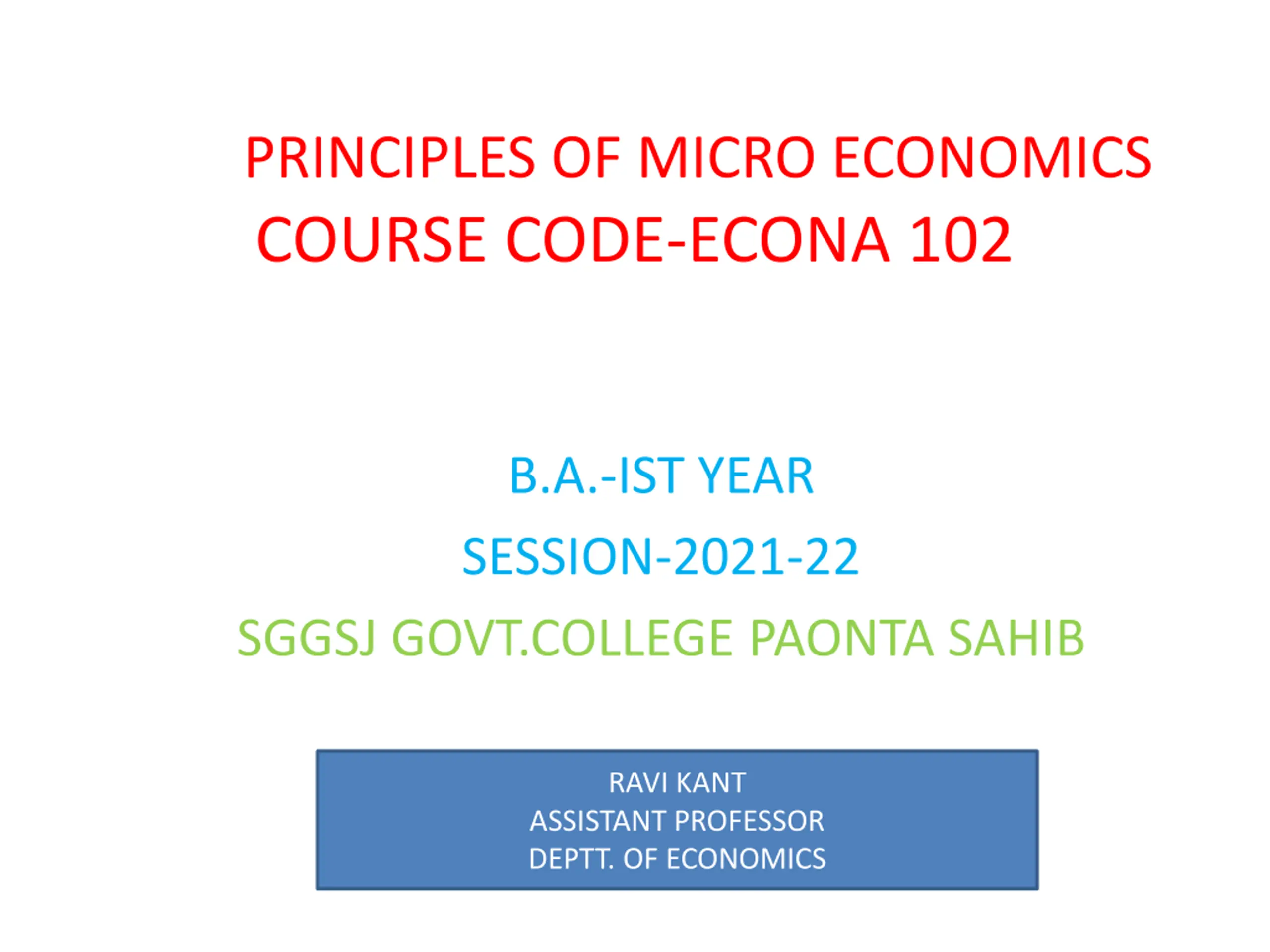 PRINCIPLES OF MICRO ECONOMICS COURSE CODE-ECONA 102 B.A.-IST YEAR SESSION-2021-22 SGGSJ GOVT.COLLEGE PAONTA SAHIB RAVI KANT ASSISTANT PROFESSOR DEPTT. OF ECONOMICS