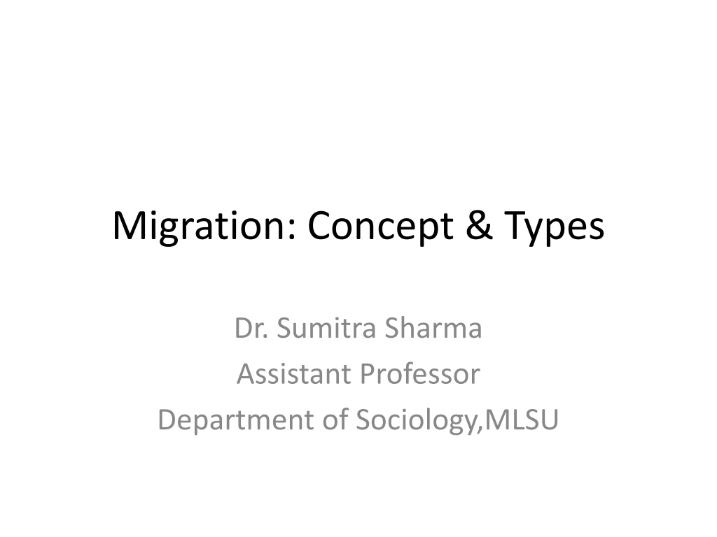 Migration: Concept & Types Dr. Sumitra Sharma Assistant Professor Department of Sociology,MLSU