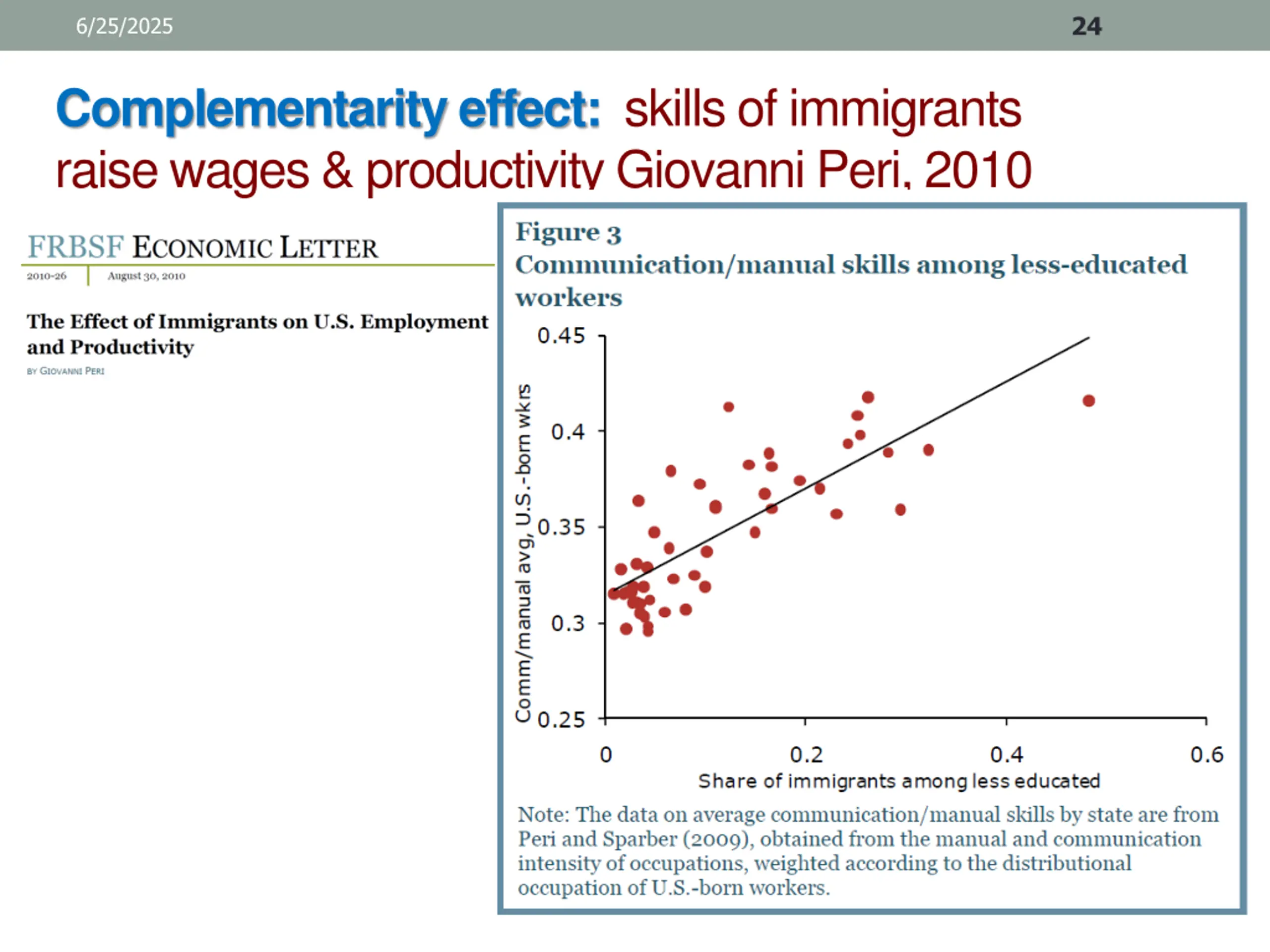 24 6/25/2025 Complementarity effect: skills of immigrants raise wages & productivity Giovanni Peri, 2010 ECON/Soci 5808 Summer 2015Last lecture