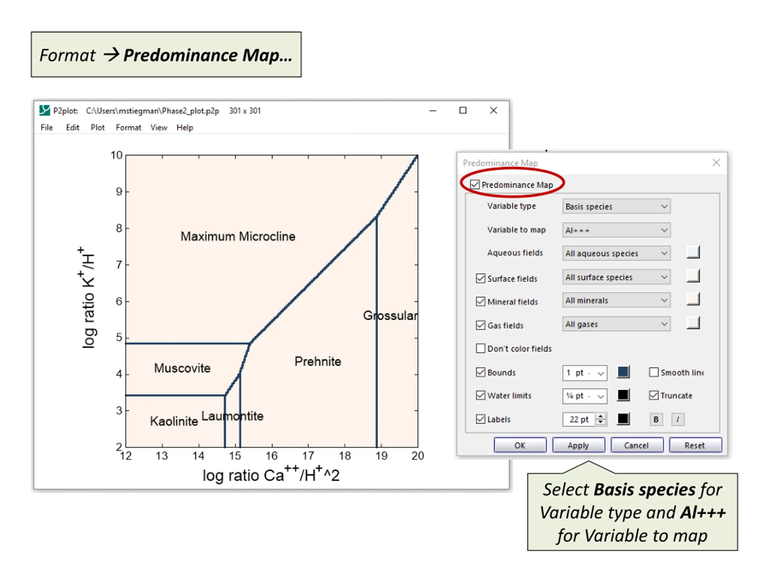 Format Predominance Map Select Basis species for Variable type and Al+++ for Variable to map