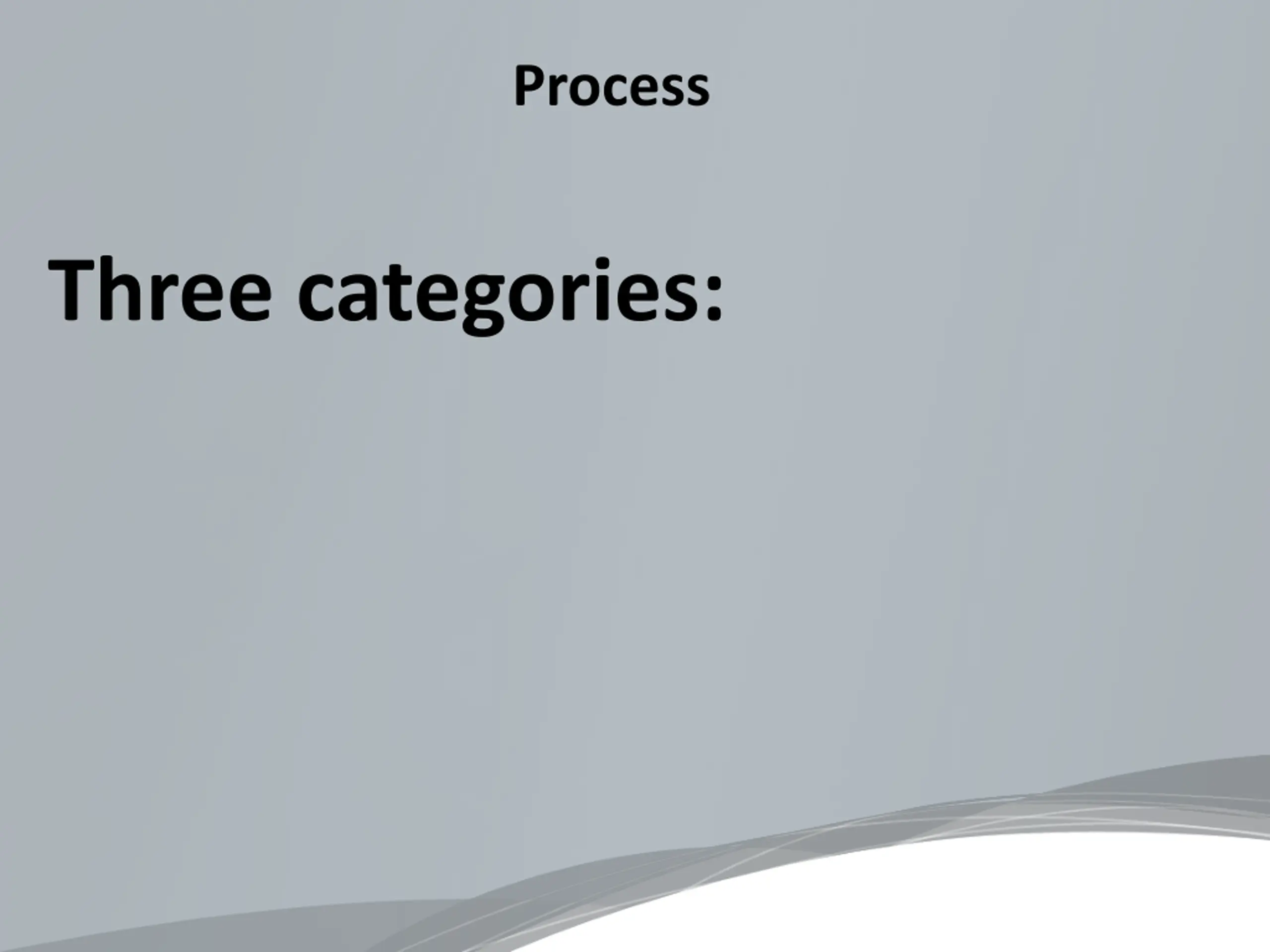 Process Three categories: