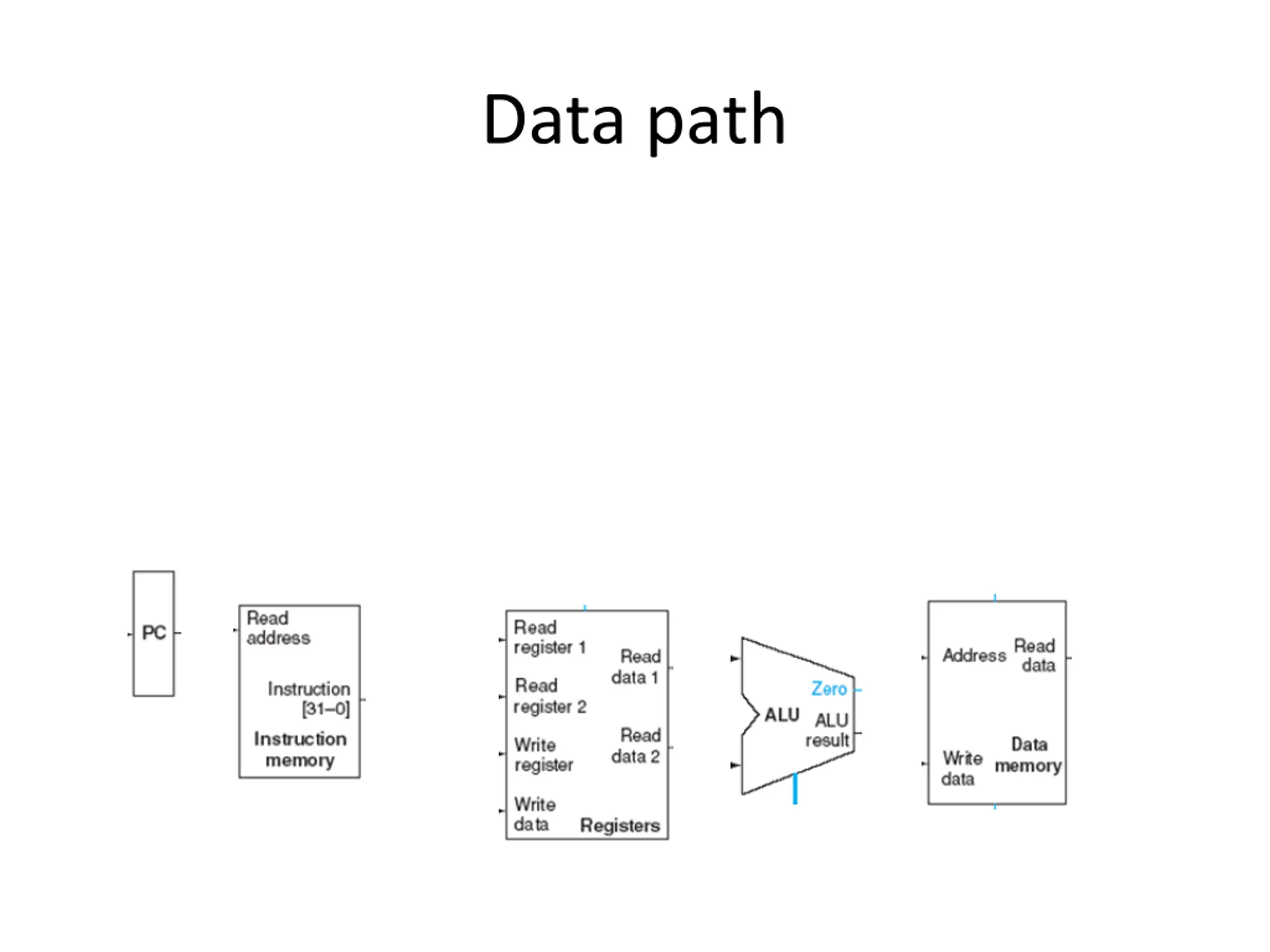 The processor We now know all the parts in the processor. ALU PC Register file Also RAM How to put them together? How to make them execute an instruction as we need?