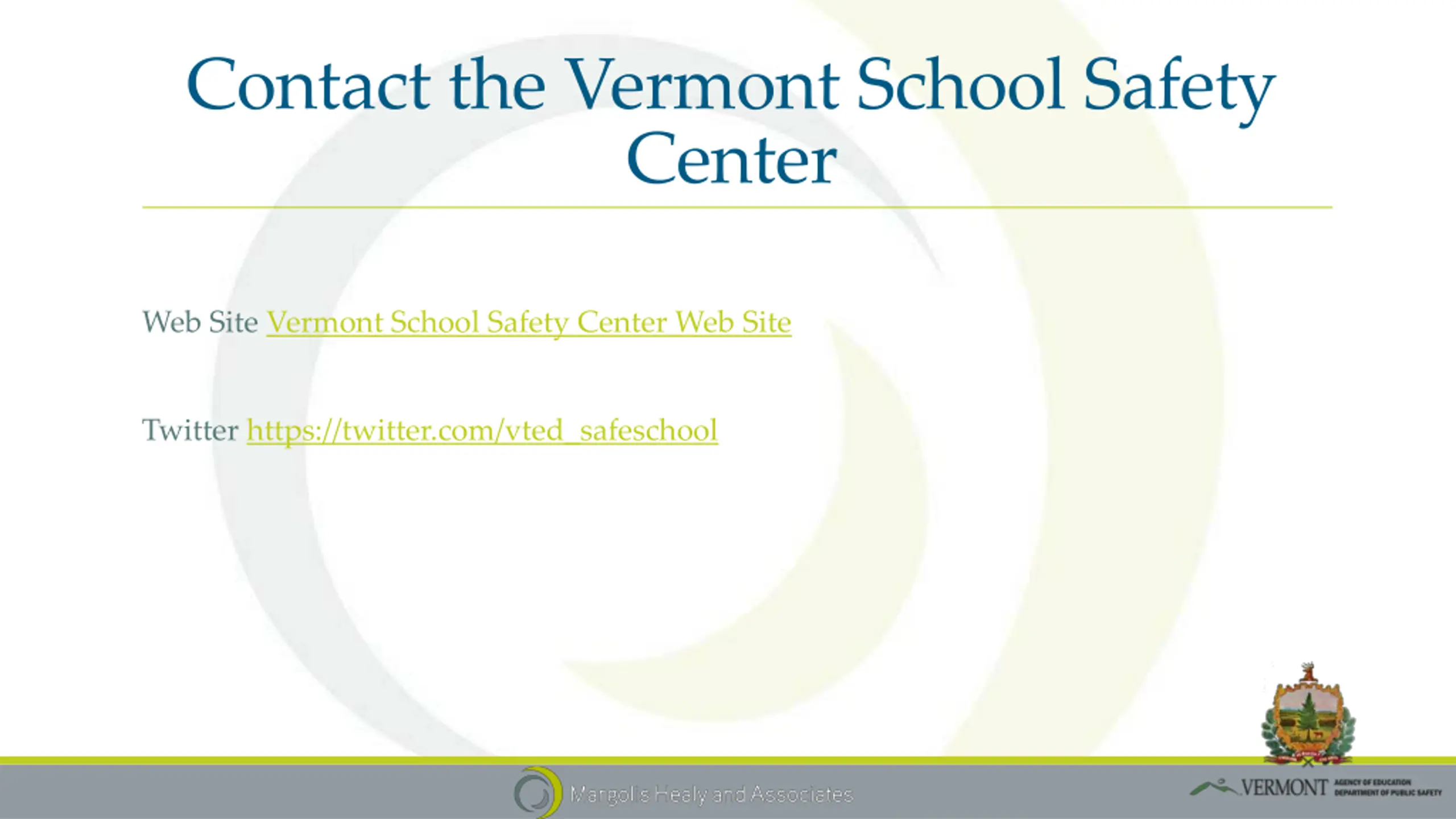 Contact the Vermont School Safety Center Web Site Vermont School Safety Center Web Site Twitter https://twitter.com/vted_safeschool