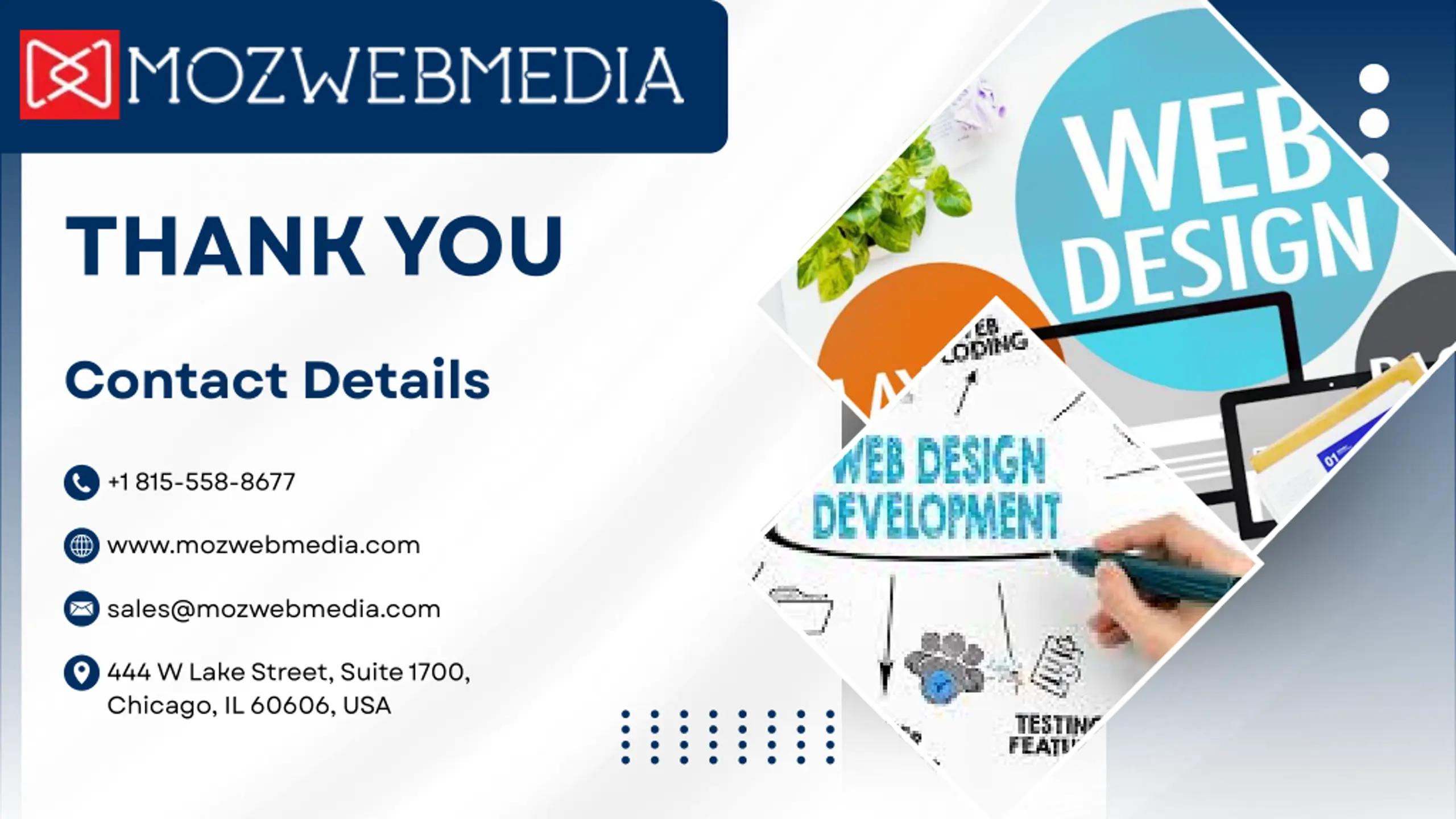THANK YOU Contact Details +1 815-558-8677 www.mozwebmedia.com sales@mozwebmedia.com 444 W Lake Street, Suite 1700, Chicago, IL 60606, USA
