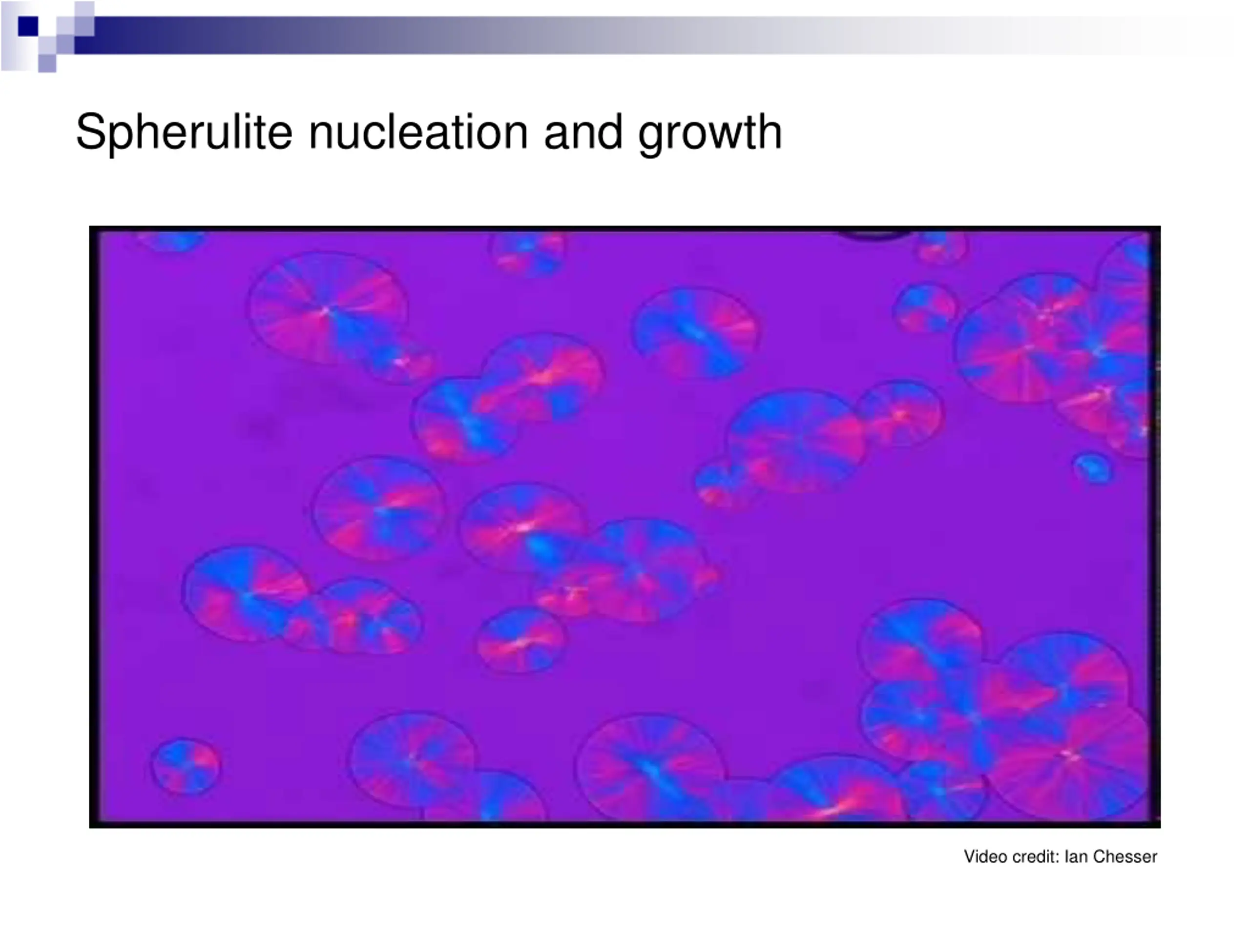 Spherulite nucleation and growth Video credit: Ian Chesser