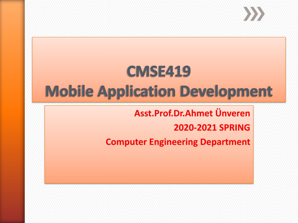 CMSE419 Mobile Application Development Asst.Prof.Dr.Ahmet nveren 2020-2021 SPRING Computer Engineering Department