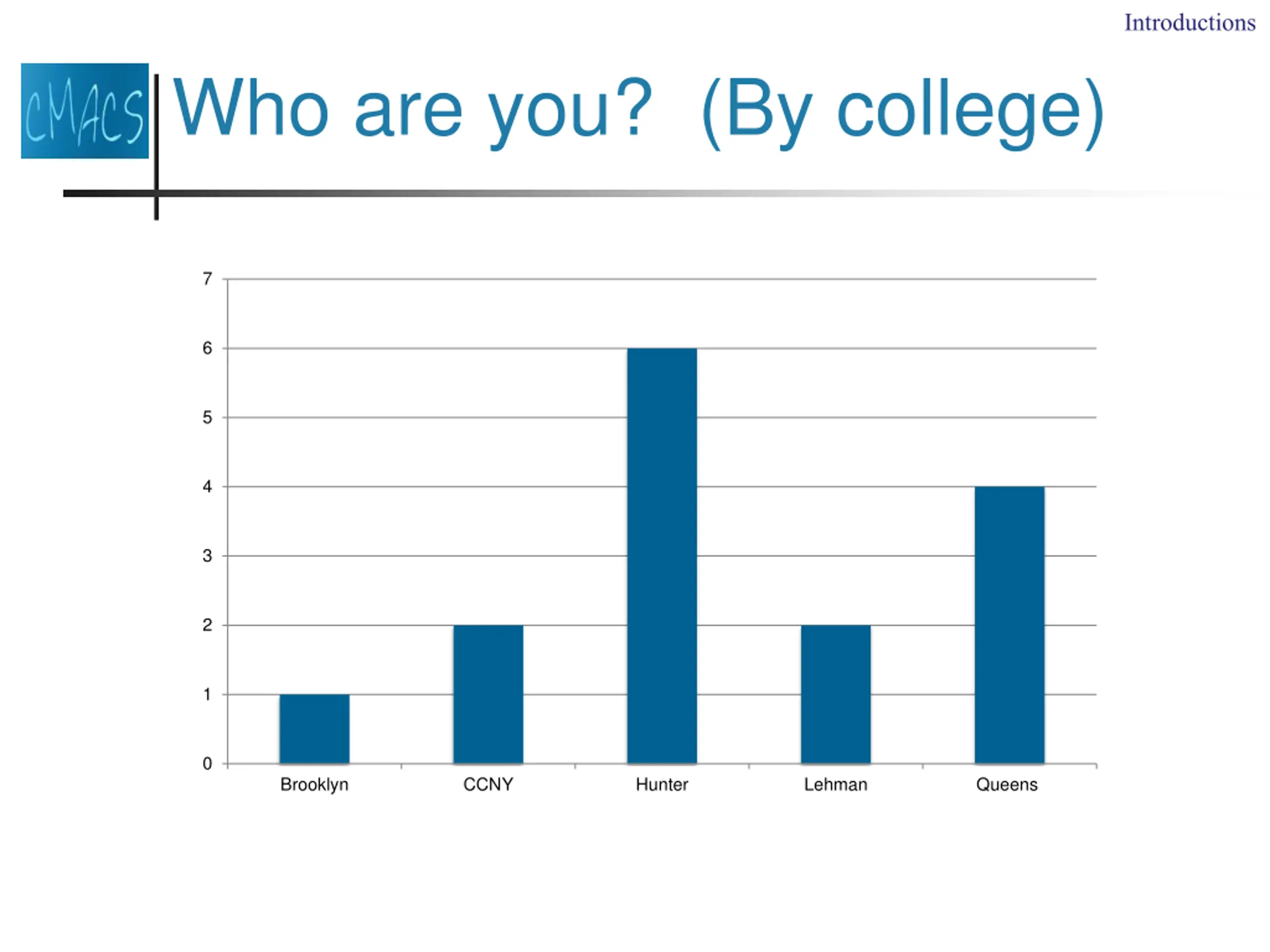 Introductions Who are you? (By college) 7 6 5 4 3 2 1 0 Brooklyn CCNY Hunter Lehman Queens