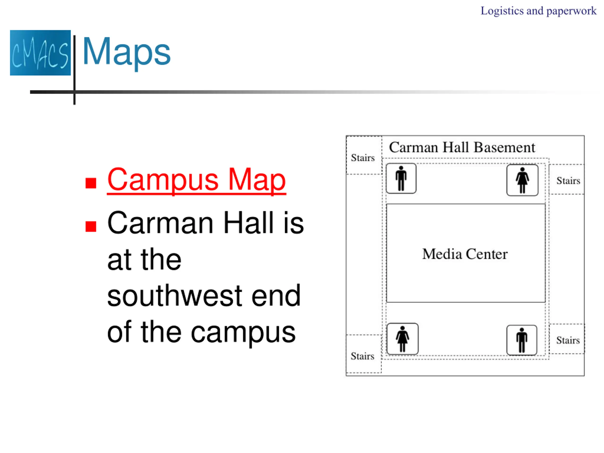 Logistics and paperwork Maps Campus Map Carman Hall is at the southwest end of the campus