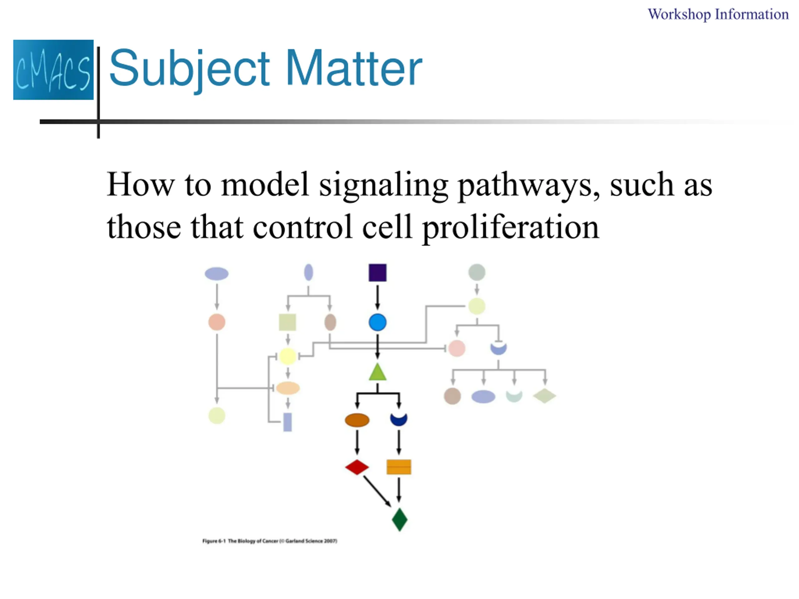 Workshop Information Subject Matter How to model signaling pathways, such as those that control cell proliferation
