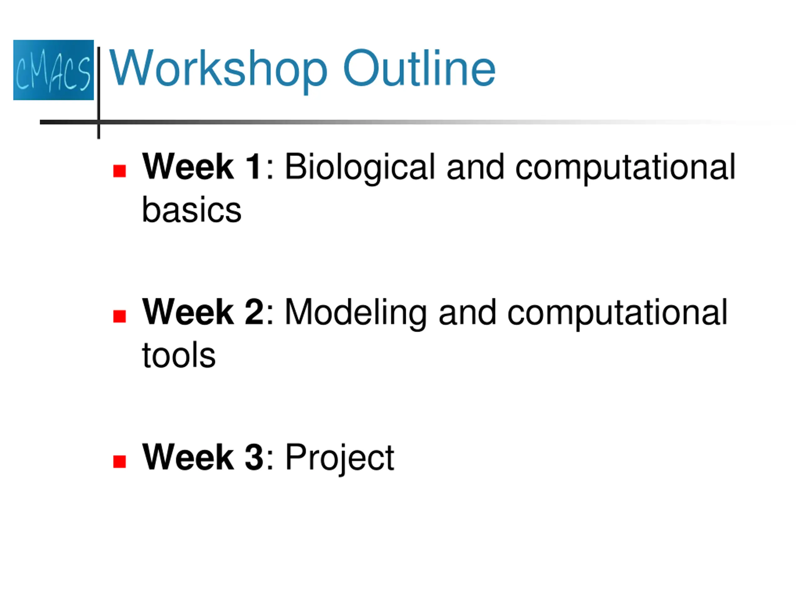 Workshop Outline Week 1: Biological and computational basics Week 2: Modeling and computational tools Week 3: Project