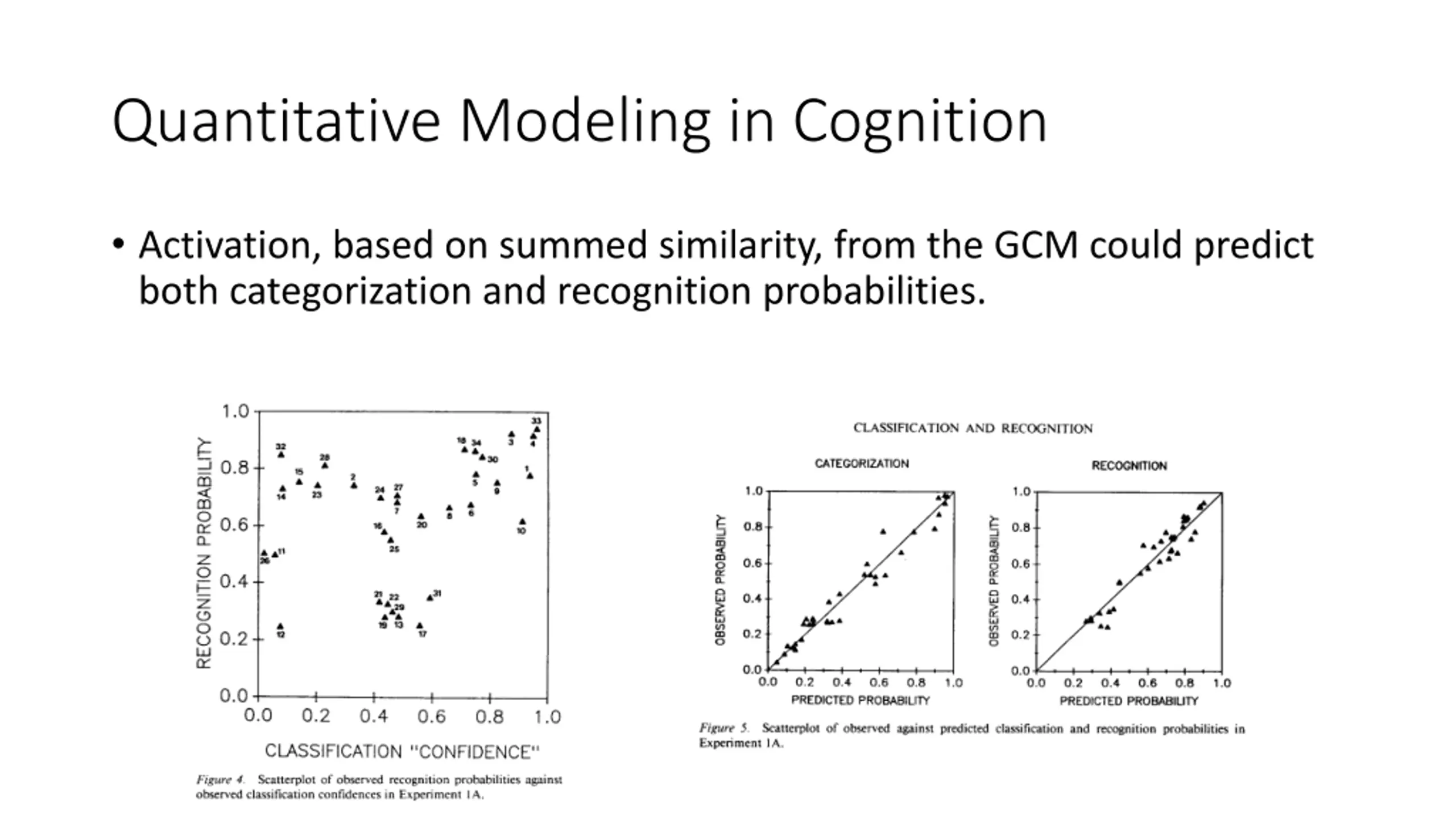 Quantitative Modeling in Cognition Activation, based on summed similarity, from the GCM could predict both categorization and recognition probabilities.