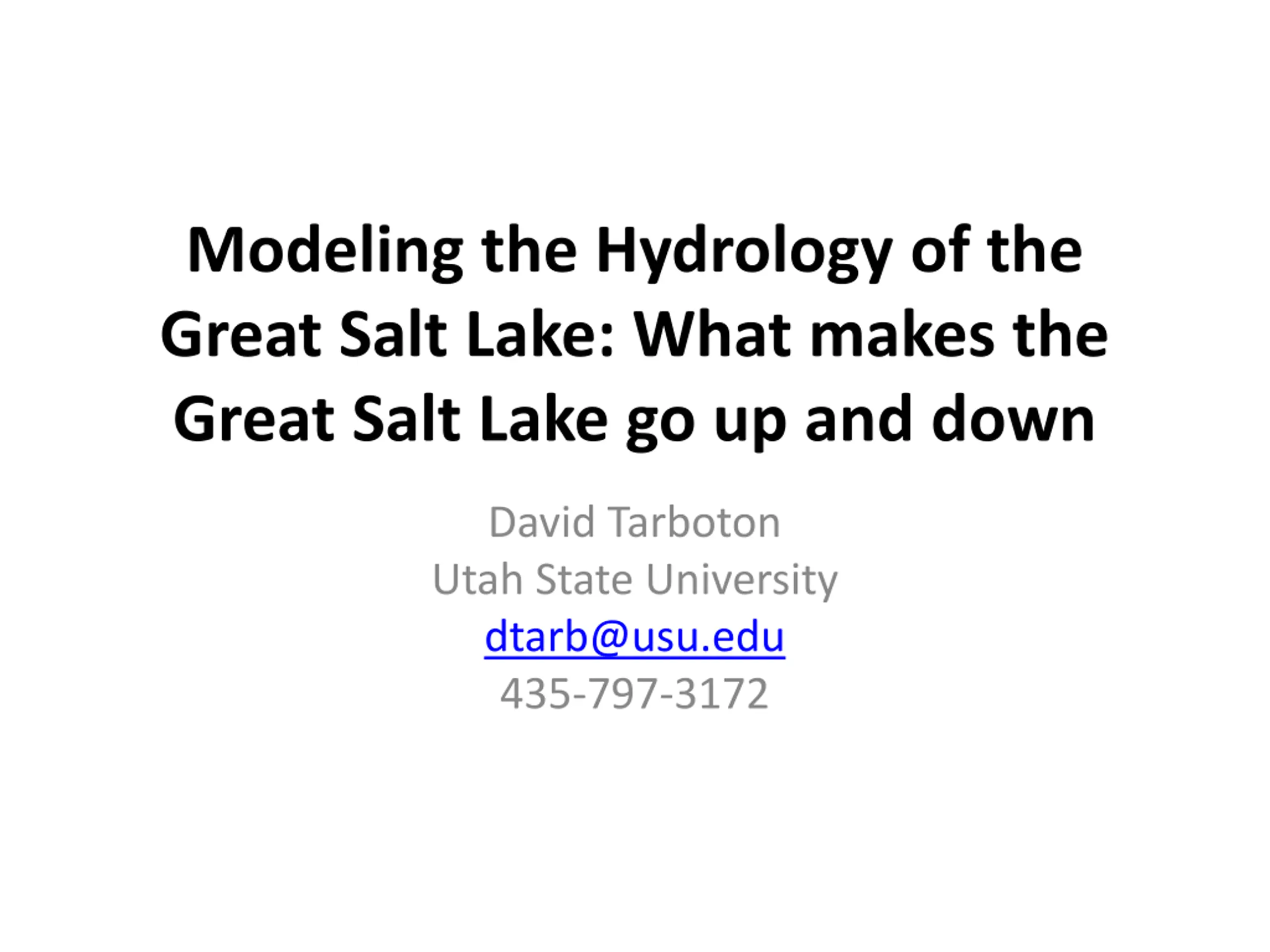 Modeling the Hydrology of the Great Salt Lake: What makes the Great Salt Lake go up and down David Tarboton Utah State University dtarb@usu.edu 435-797-3172