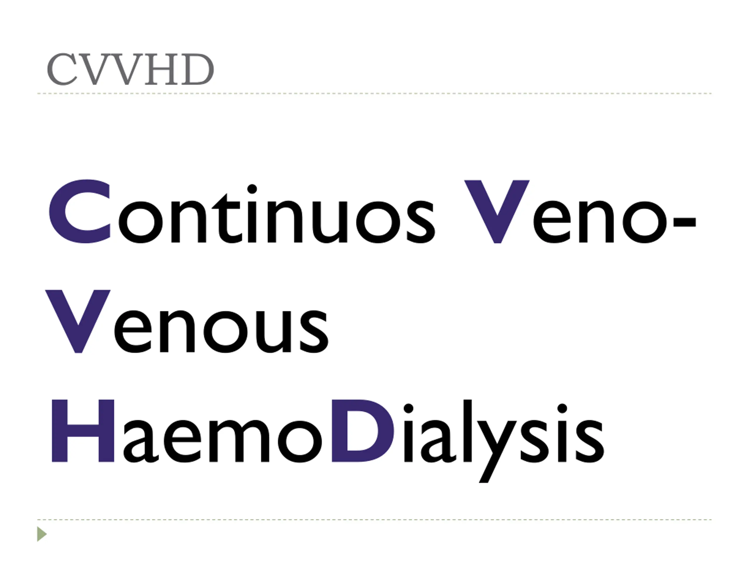 CVVHD Continuos Veno- Venous HaemoDialysis