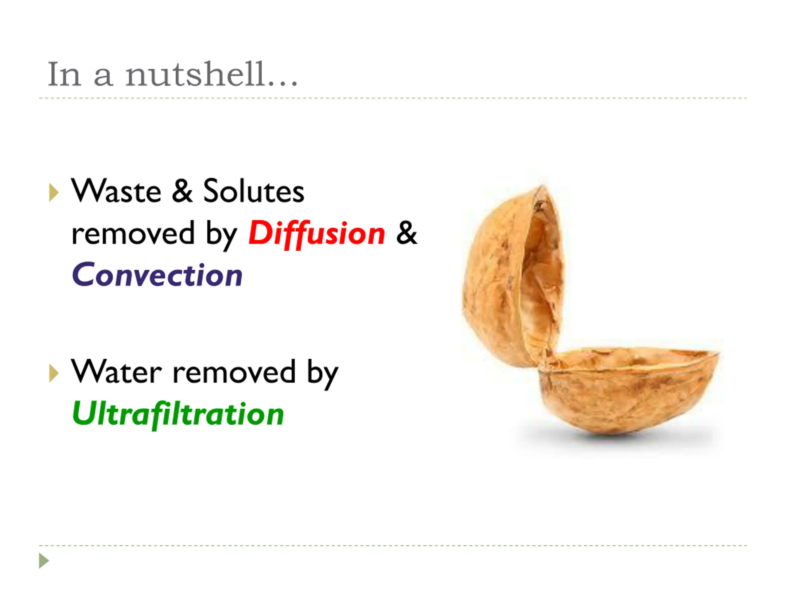 In a nutshell Waste & Solutes removed by Diffusion & Convection Water removed by Ultrafiltration